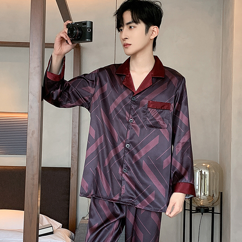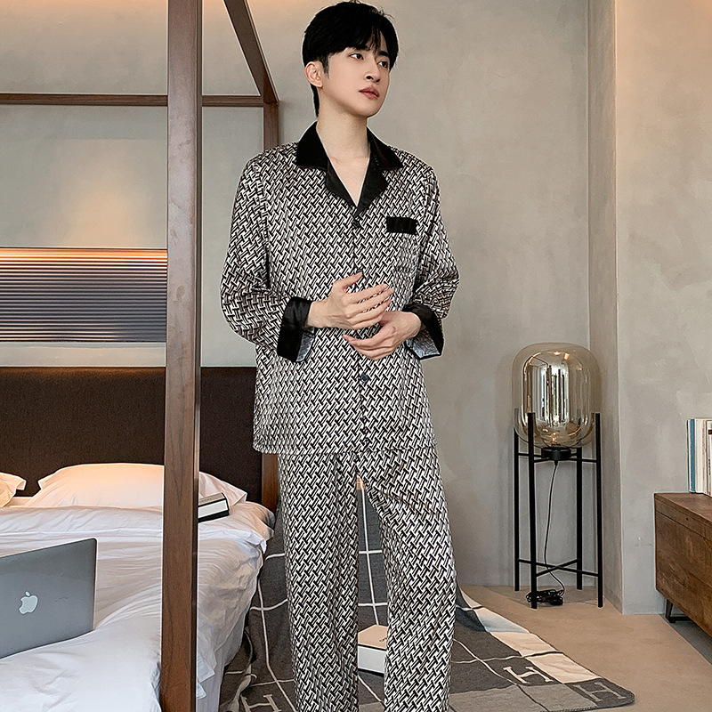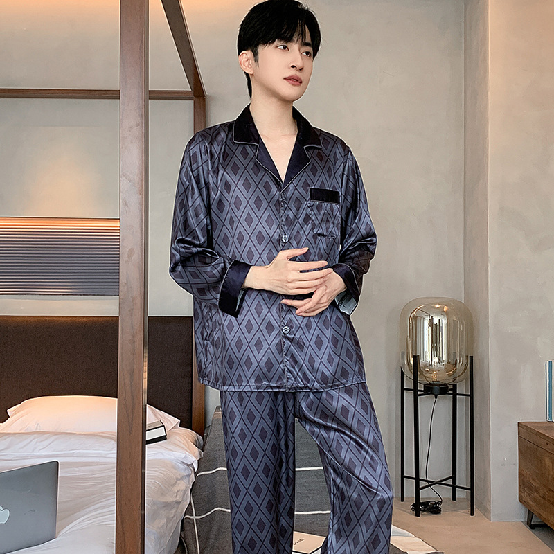 2024 새 남성 잠옷 봄과 가을 인공 실크 긴팔 카디건은 아빠 밖에서 입을 수 있습니다. 아이스 실크 홈웨어 겨울스토어 가기