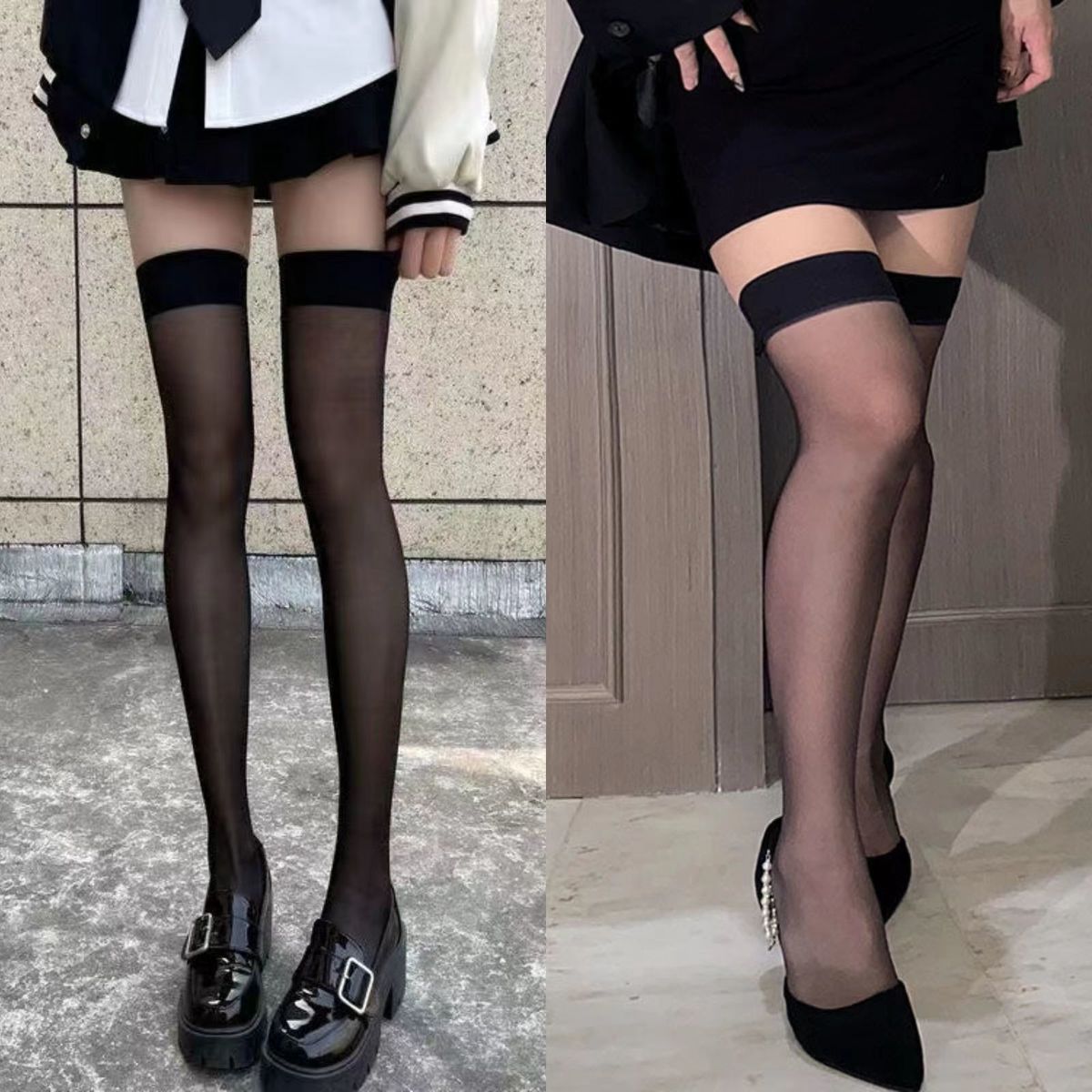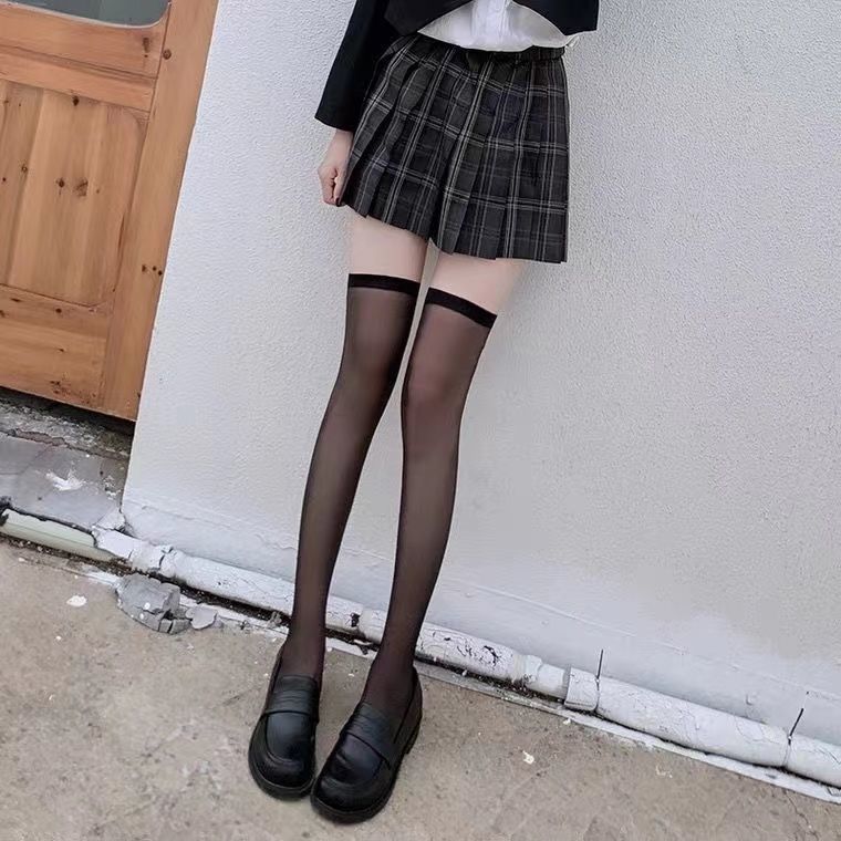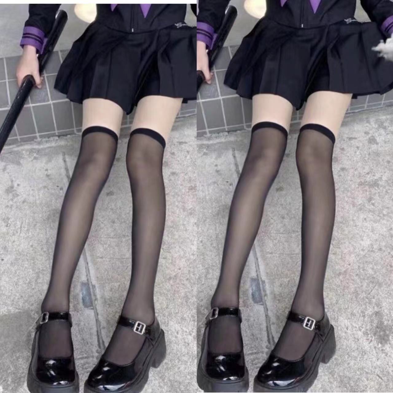 • 2 쌍 [투명한 무릎 위 블랙]]