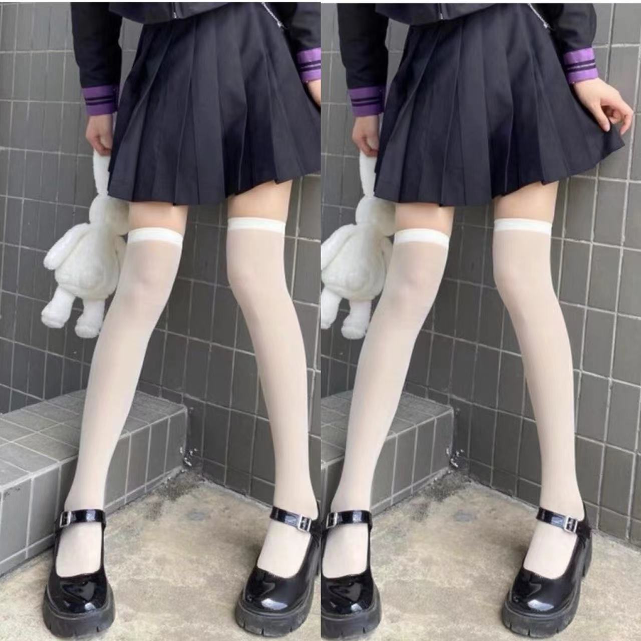 • 2 쌍 [투명한 무릎 위 흰색]]