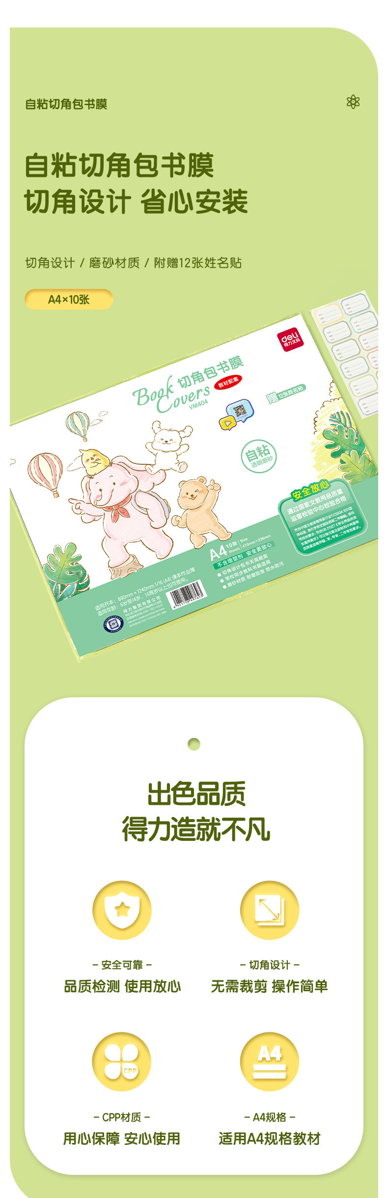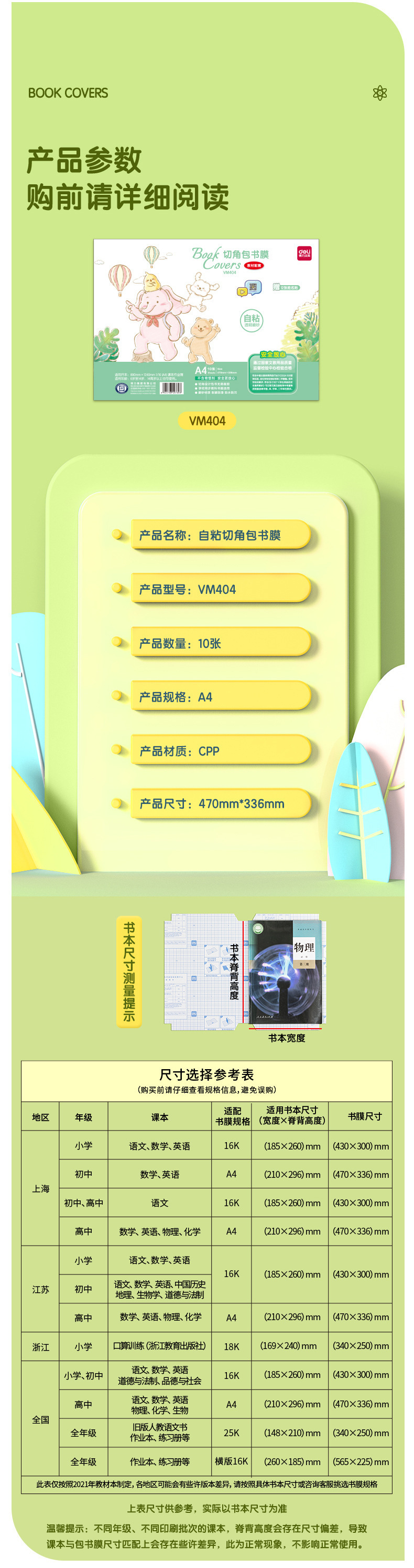 델리 VM401/402/403/404 책 표지 종이 자체 접착 투명 프로스티드 16K 책 보호 커버 교과서 책 케이스
