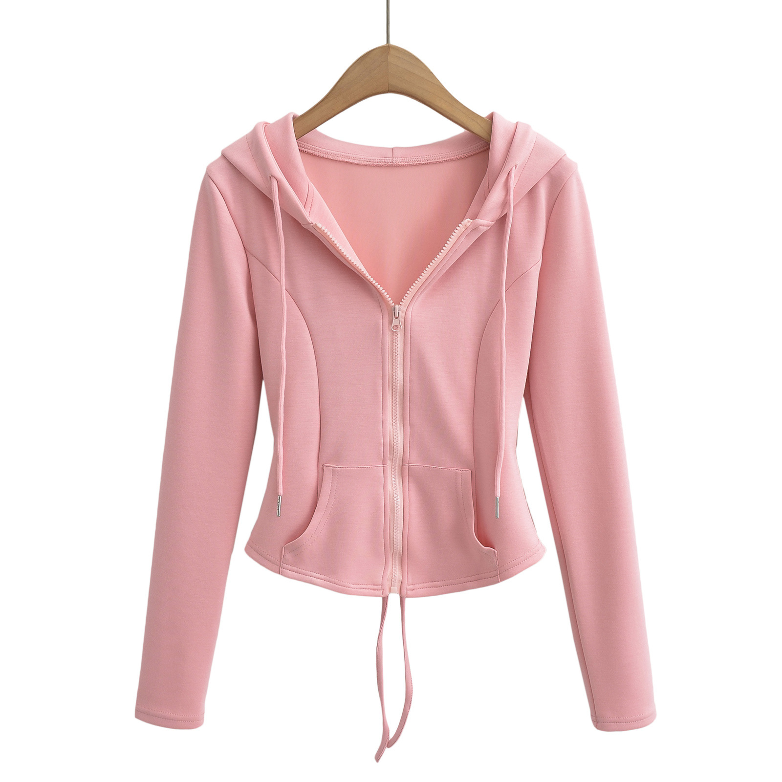 7339-23 가을 새로운 미국 순수한 욕망 지퍼 후드 자켓 스포츠 레저 벨 바지 밤 달리기 세트