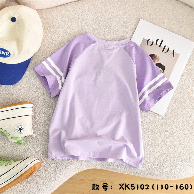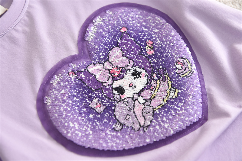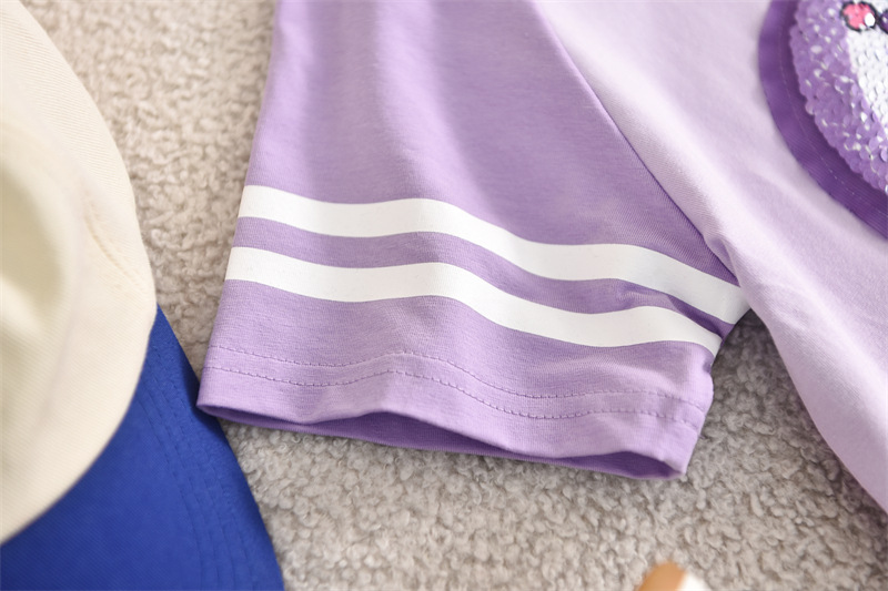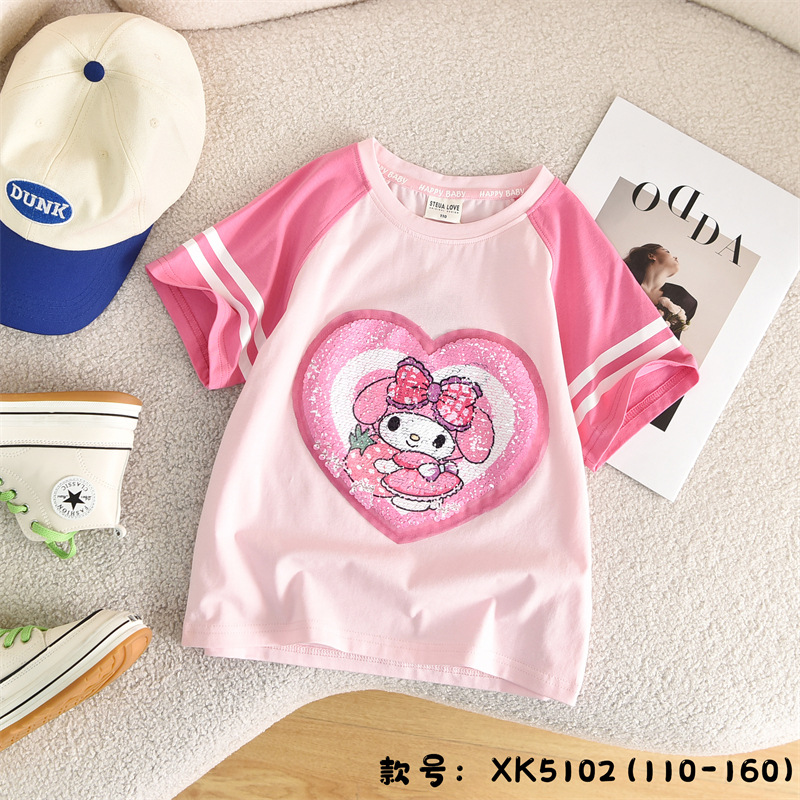 여자 여름 인스턴트 잉크 아동 의류 도매 스팽글 색상 변경 의류 어린이 순수 코튼 티셔츠 반팔 통기성 달콤한 스타일스토어 가기