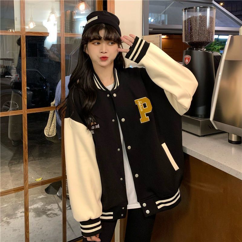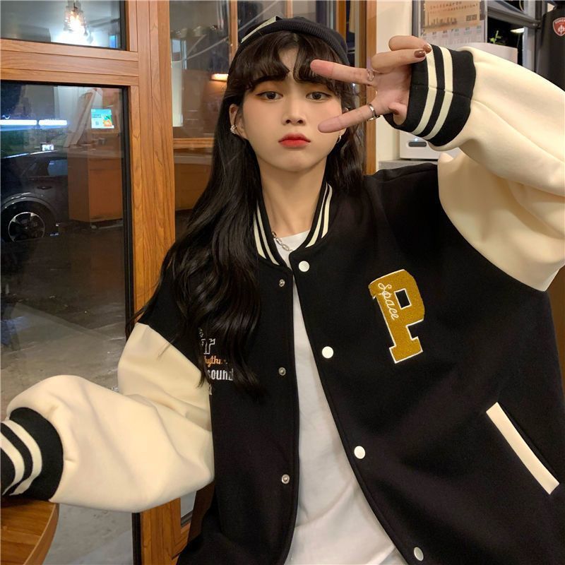 가을과 겨울 새 중학생 2022 여성을위한 야구 재킷 한국식 느슨한 짧은 홍콩 스타일 재킷 캐주얼 탑스토어 가기