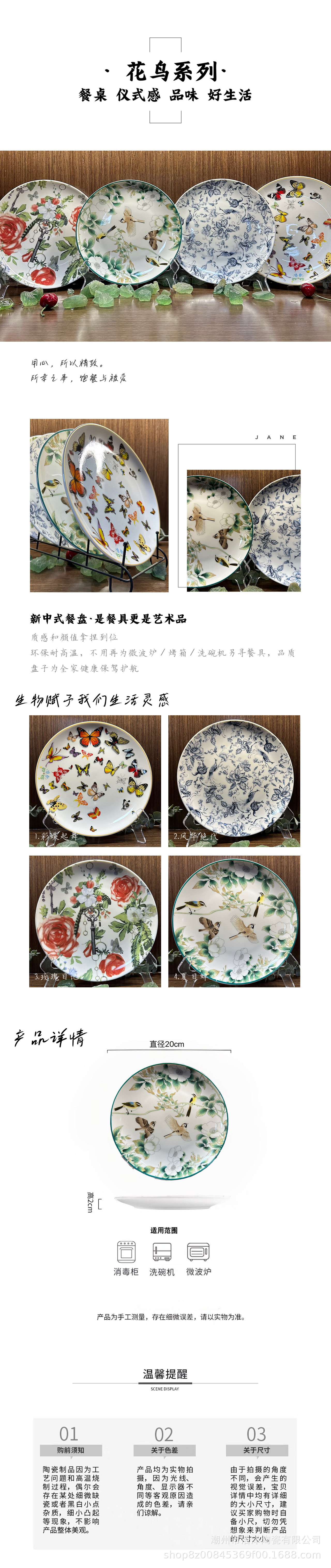 국가 스타일 꽃 새 목가적 인 스타일 시리즈 높은 모양의 시뮬레이션 풀 세트 개인화 된 동물 세라믹 음식 서양 음식 디저트 얕은 접시스토어 가기