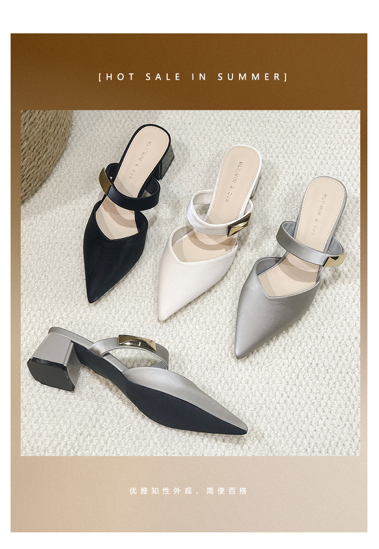 후이리야 여성용 2024 신상 하이힐 슬리퍼, 중간 굽 두꺼운 굽, 앞코가 덮인 뮬 슈즈 G5330-6
