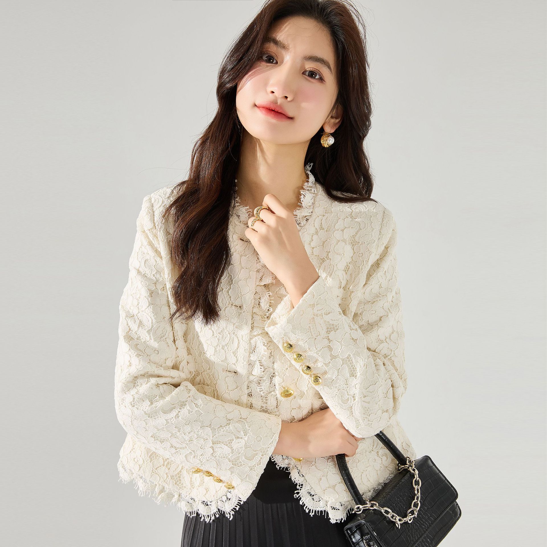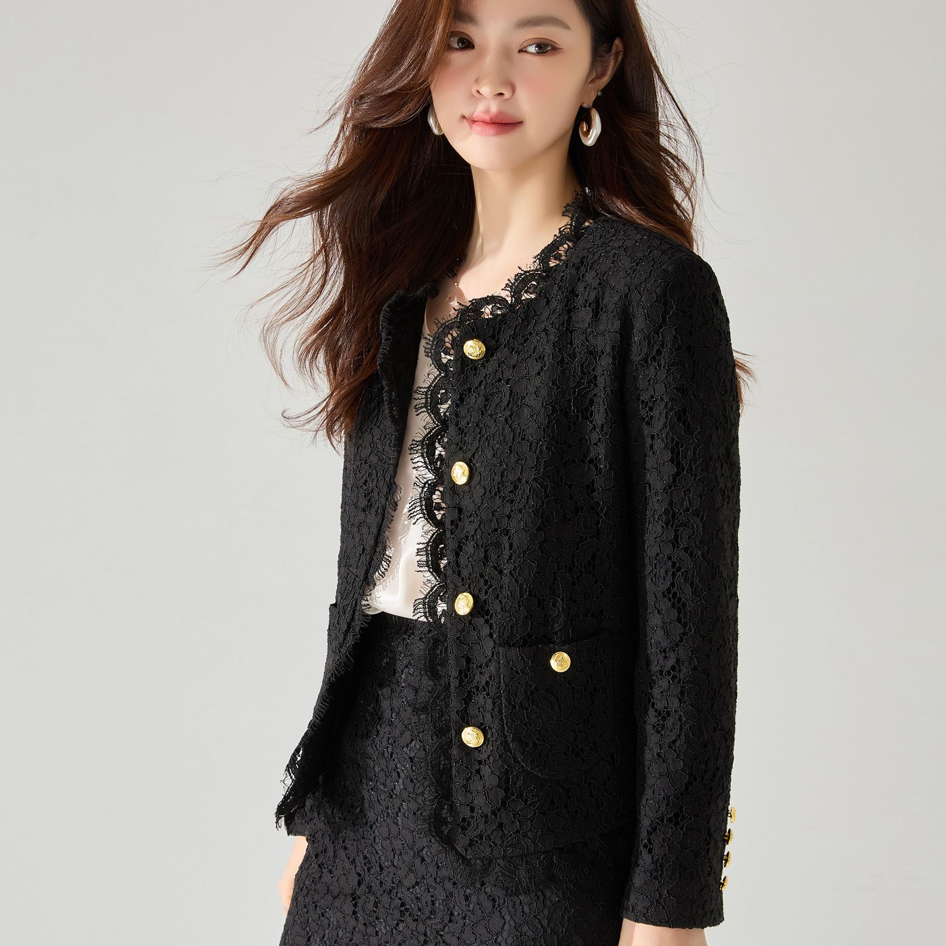 ● 货号:外套15553、半裙15578 ● 款名:蕾丝套装