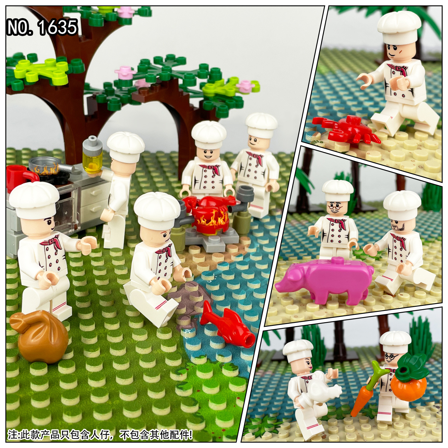대외 무역 전용 M1635 요리사 블록 피규어 대도시 직업 소형 블록 장난감 가방 포장 배송