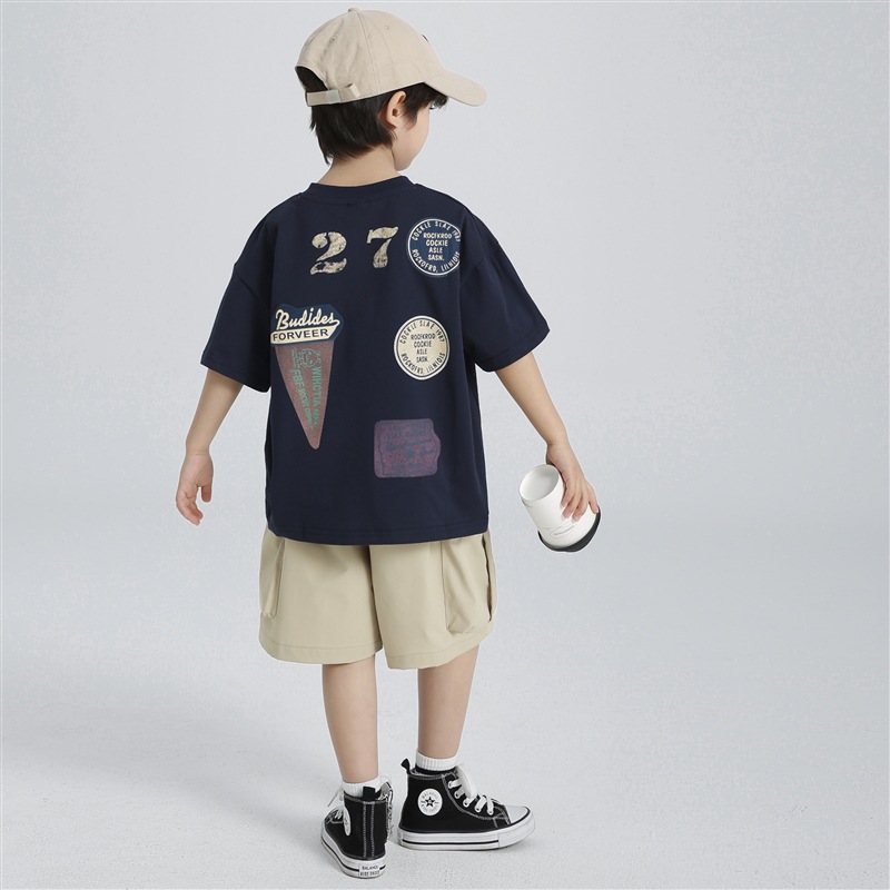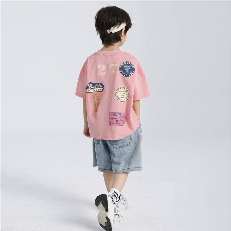 Haima의 2025 여름 새로운 어린이 아이스크림 인쇄 면화 반팔 티셔츠 소년과 소녀 여름 옷