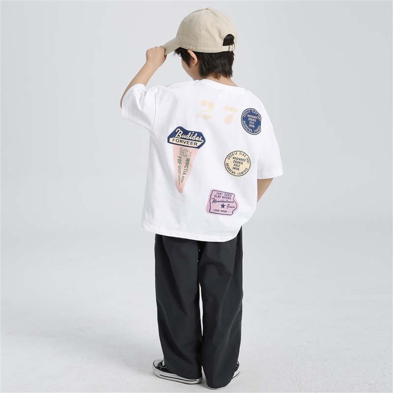Haima의 2025 여름 새로운 어린이 아이스크림 인쇄 면화 반팔 티셔츠 소년과 소녀 여름 옷스토어 가기