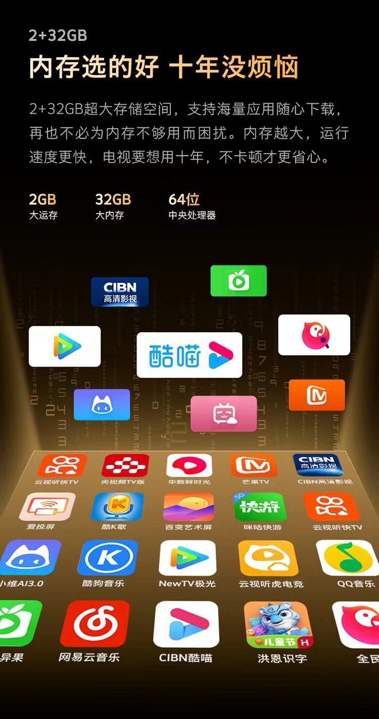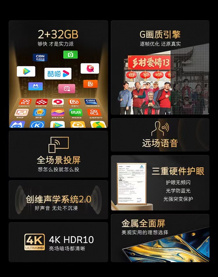 65A3D TV 65inch TV 2+32G 원거리 음성 G 화질 엔진 스마트 프로젝션 4K 초고화질스토어 가기
