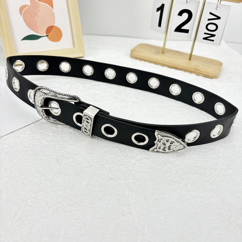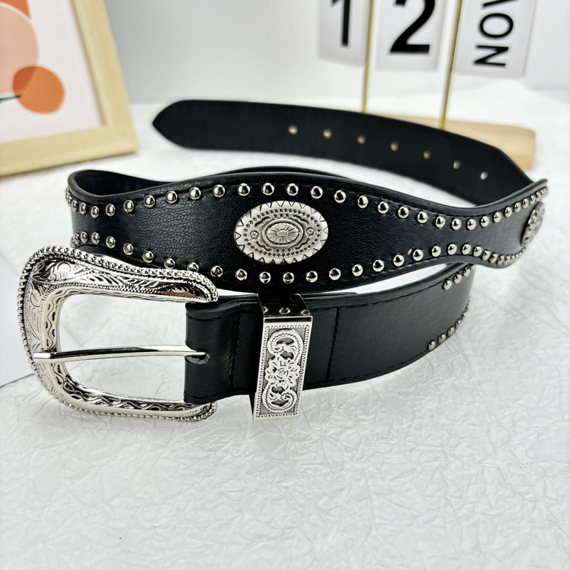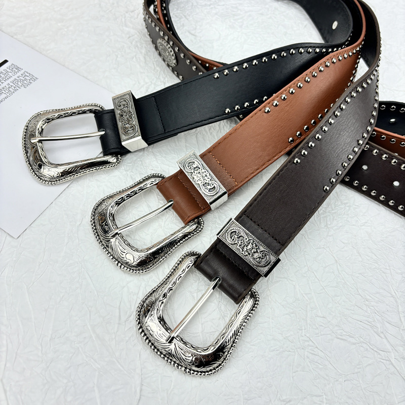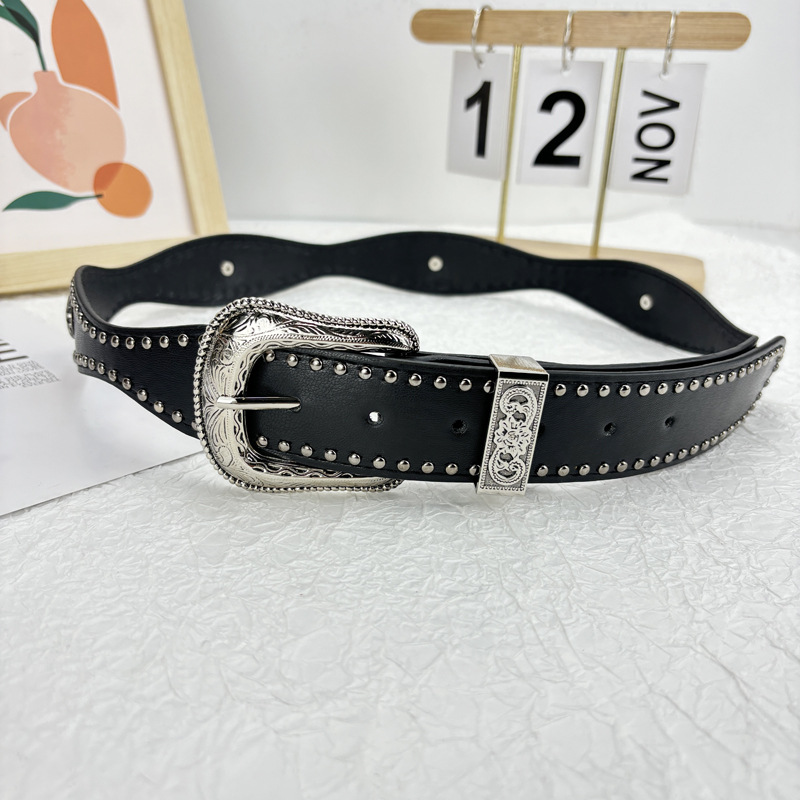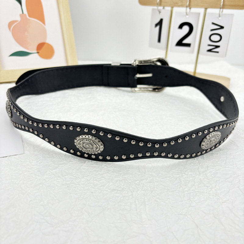 여성을위한 미국 복고풍 벨트 2024 새로운 리벳 펑크 스타일 벨트 다양한 청바지와 개성 y2g 블랙