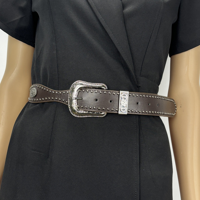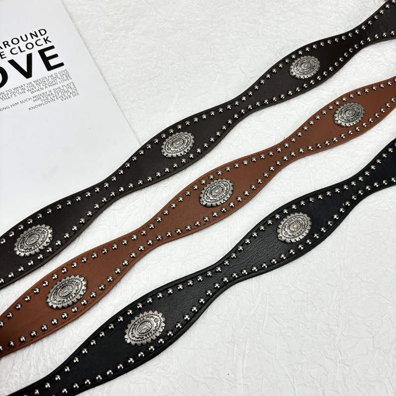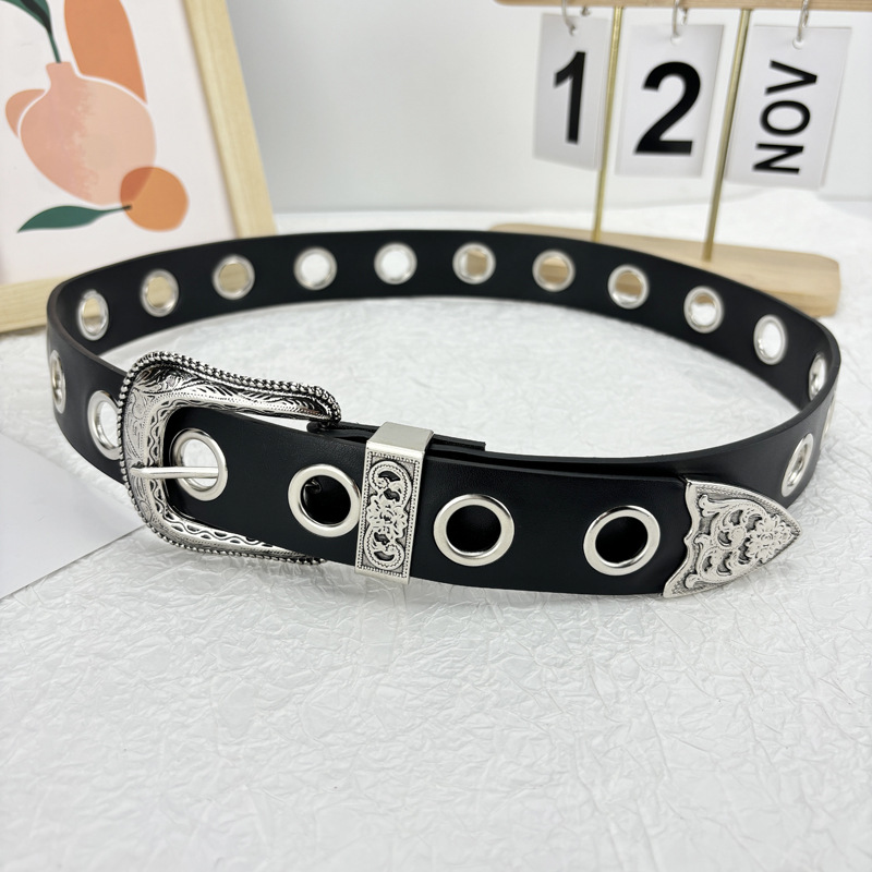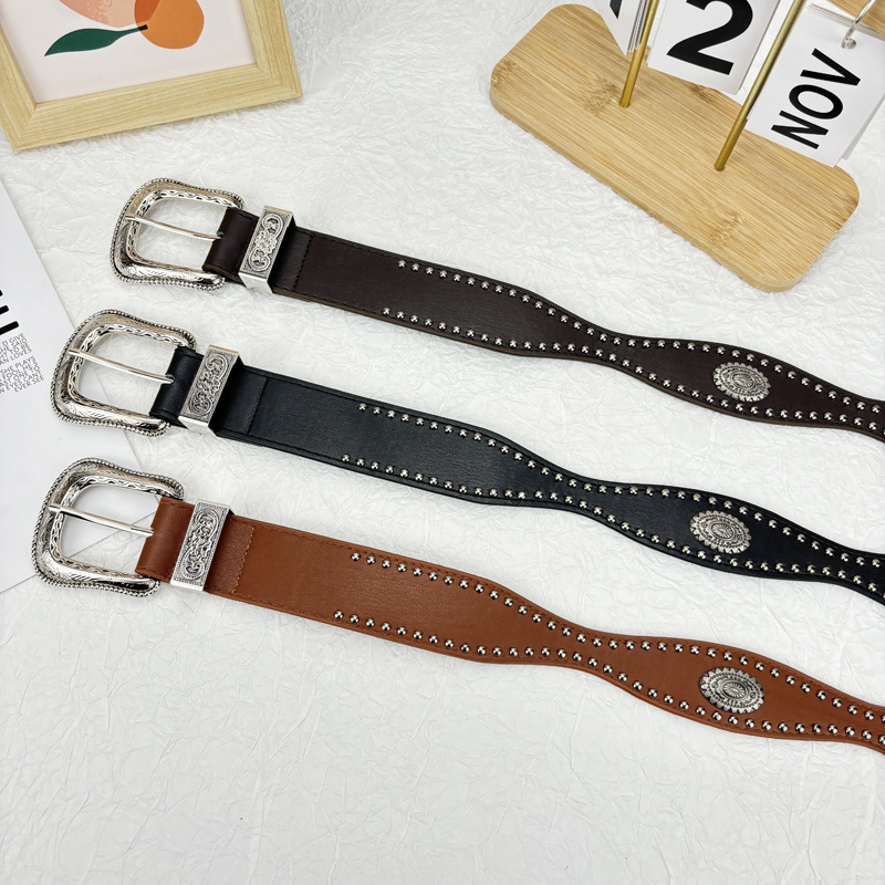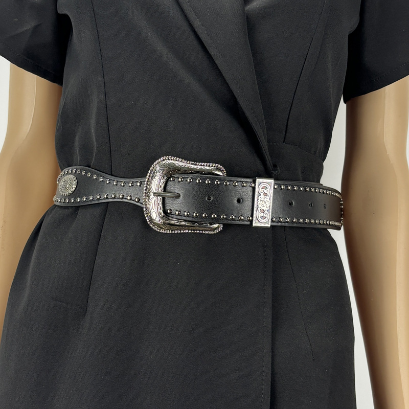 여성을위한 미국 복고풍 벨트 2024 새로운 리벳 펑크 스타일 벨트 다양한 청바지와 개성 y2g 블랙