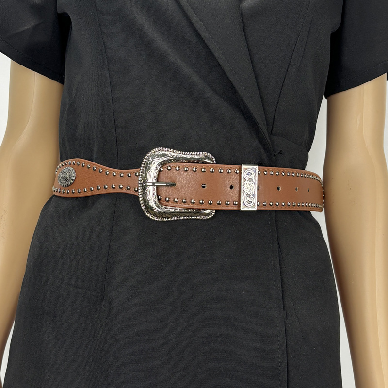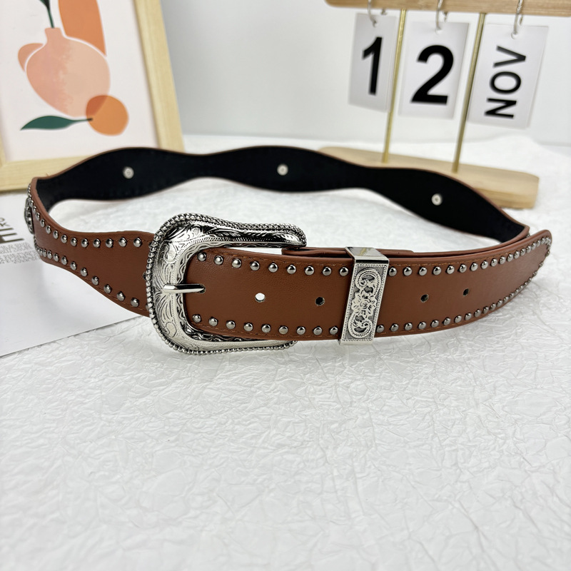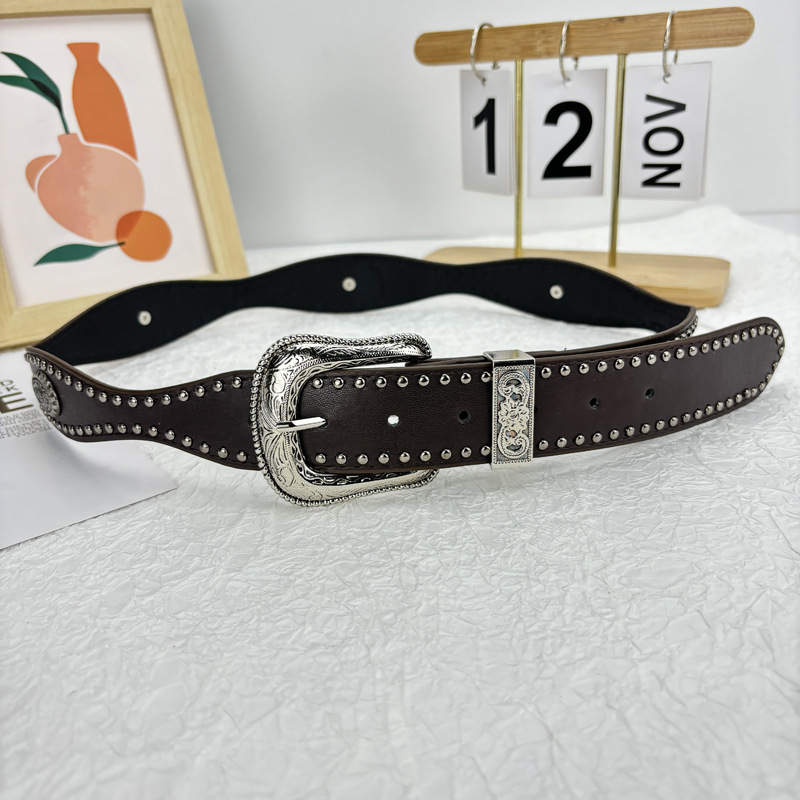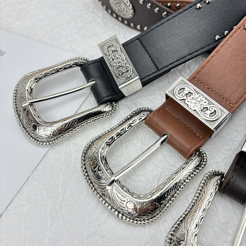 여성을위한 미국 복고풍 벨트 2024 새로운 리벳 펑크 스타일 벨트 다양한 청바지와 개성 y2g 블랙스토어 가기