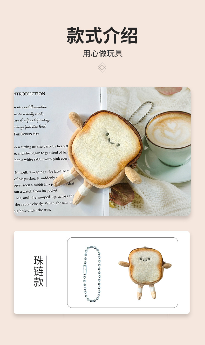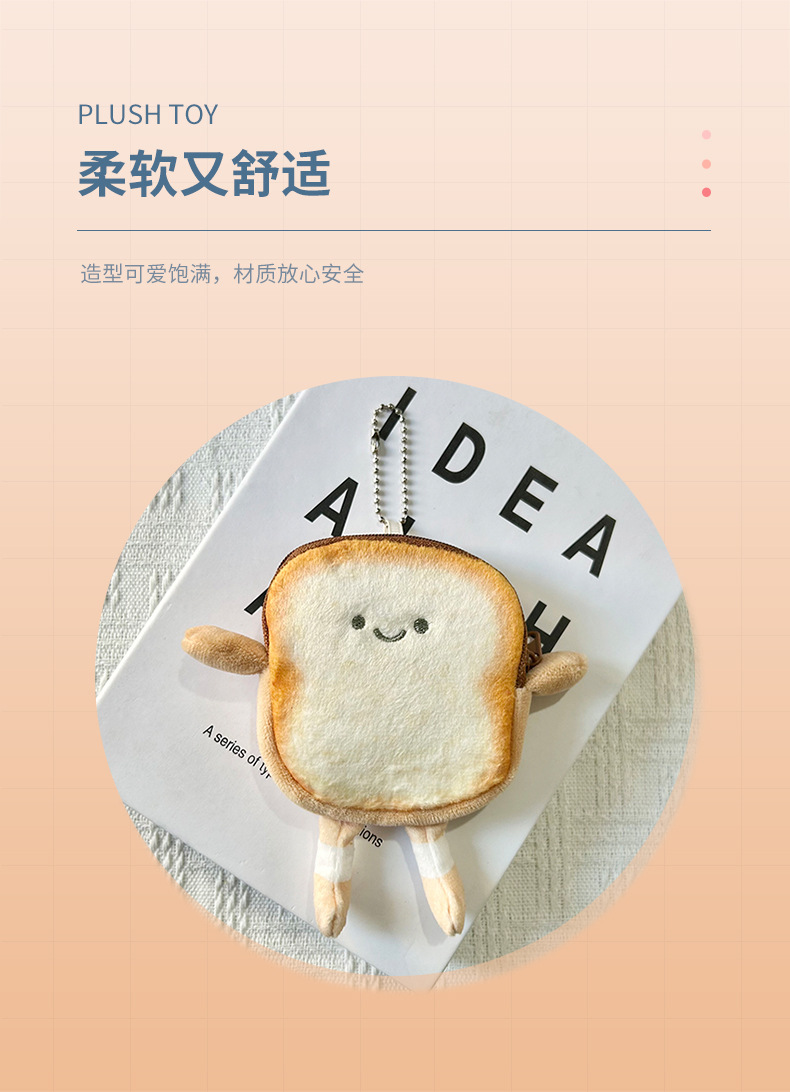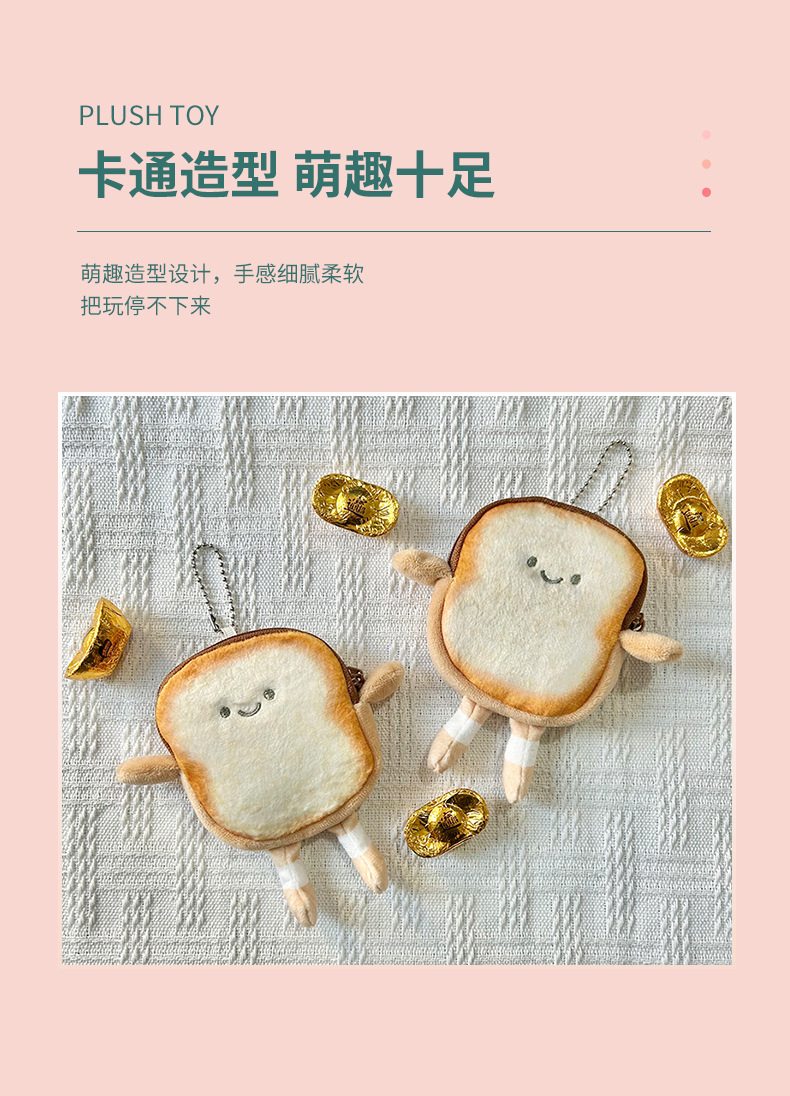 만화 토스트 빵 모양 봉제 장난감 동전 지갑 펜던트 어린이 인형 키 카드 가방 도매 판매스토어 가기