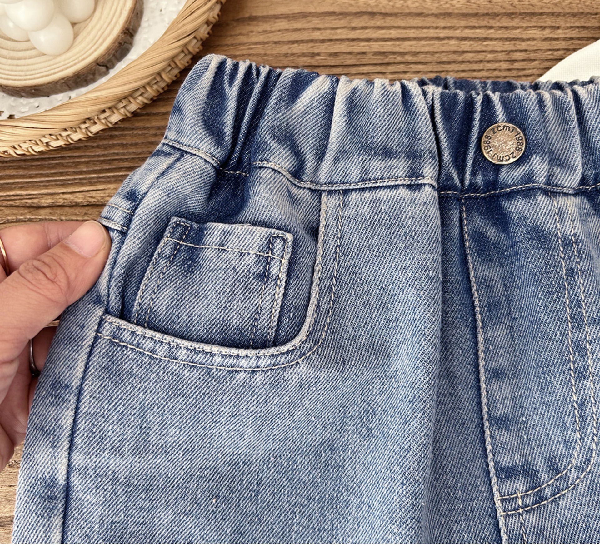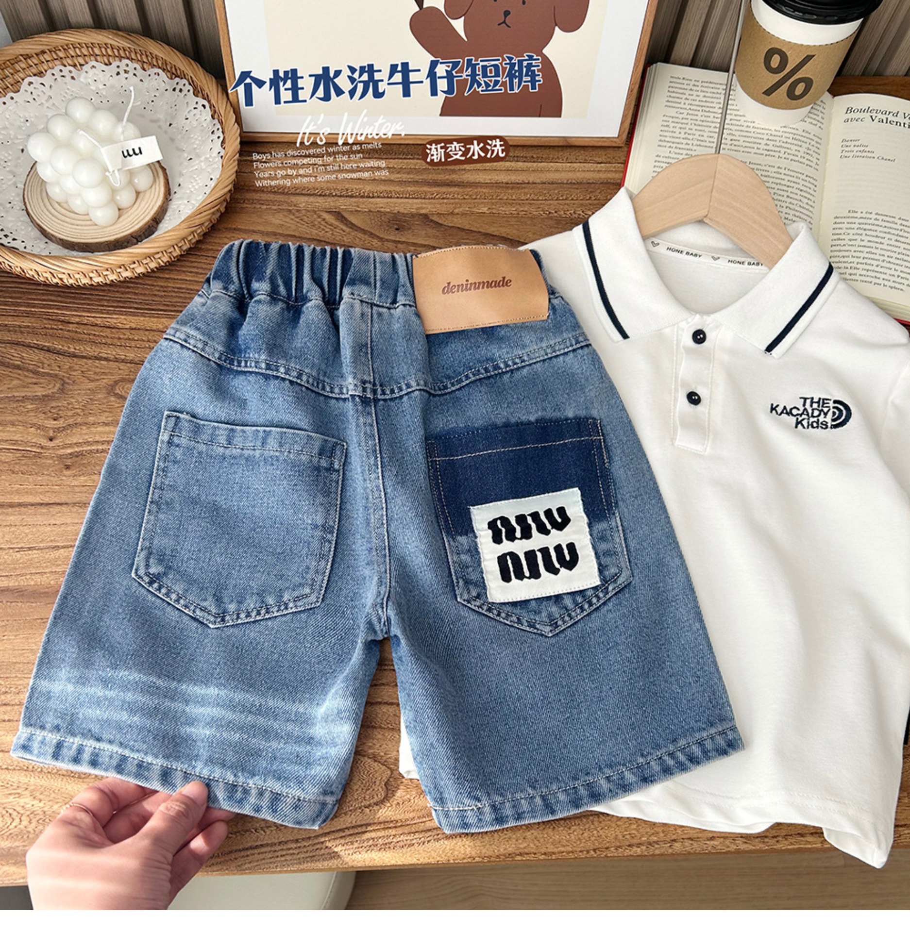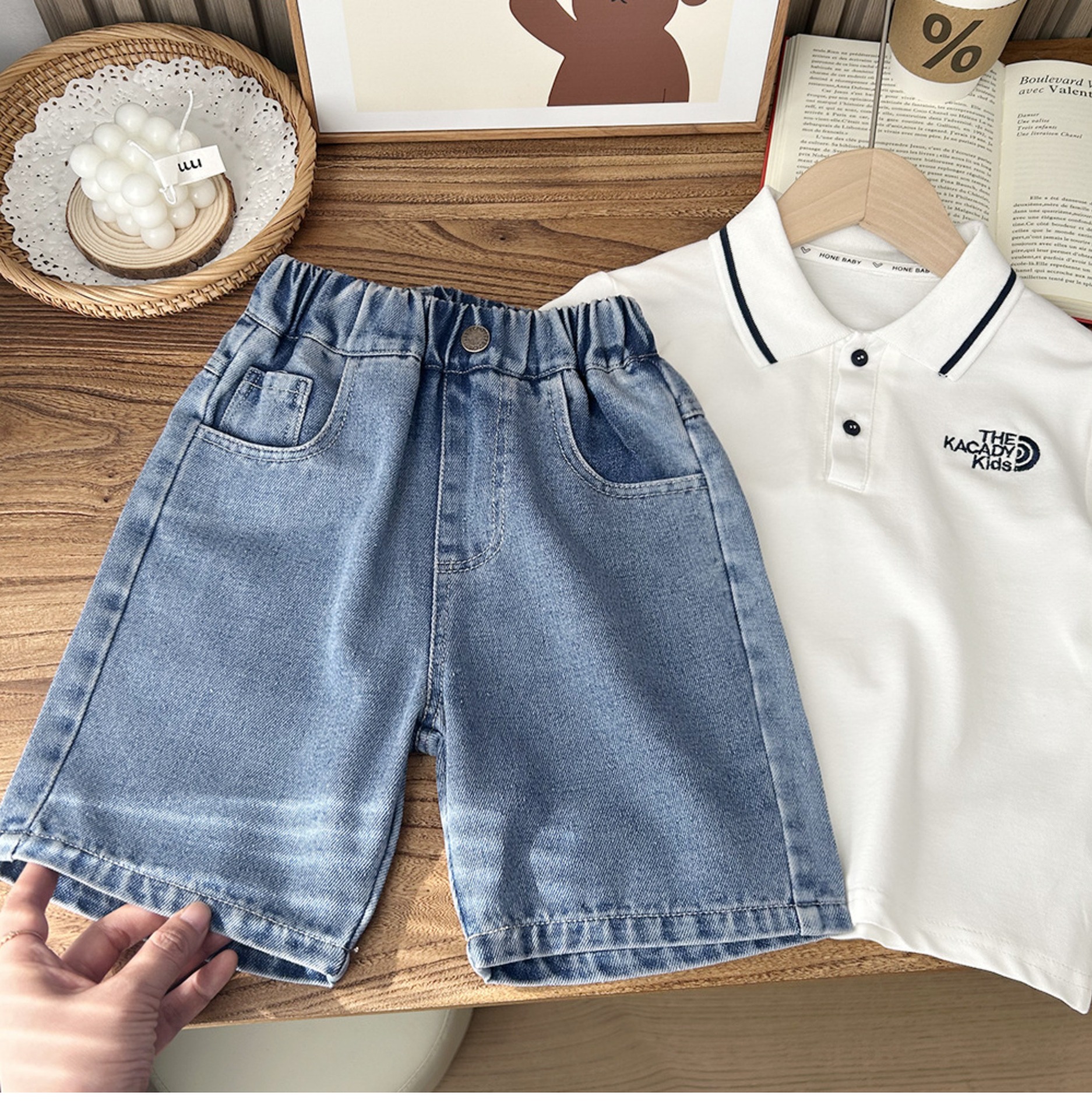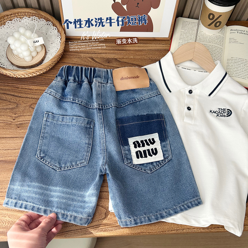 한국식 어린이 부드러운 데님 반바지 2024 여름 새로운 중형 및 대형 소년 느슨한 자른 바지 얇은스토어 가기