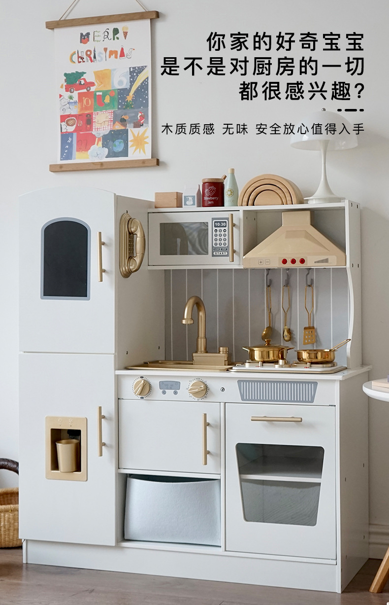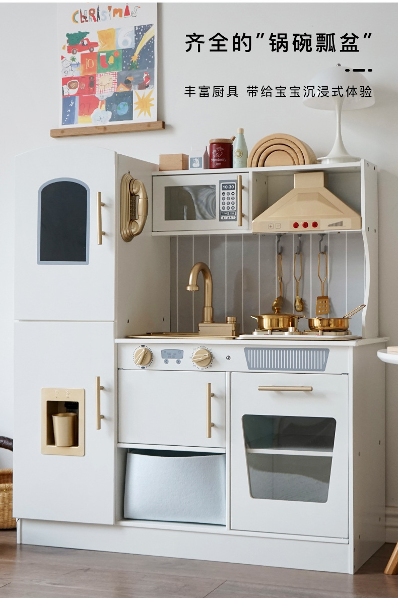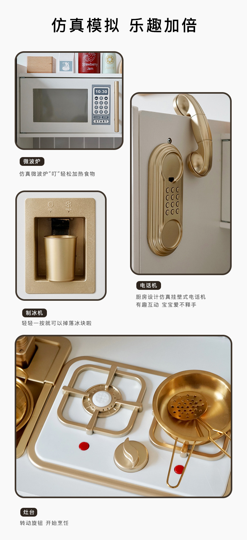 골드 주방 수출 품질 시뮬레이션 놀이 집 소리와 조명 효과 나무 장난감 조명 분위기 전체 주방 용품 세트스토어 가기