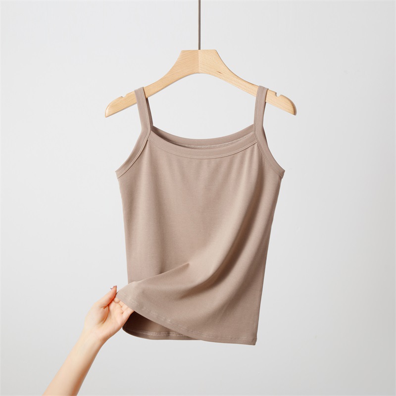 간단한 솔리드 컬러 작은 카미솔 여성의 여름 외부 면화 내베이스 셔츠 민소매 슬림 핏 여성용 탑스토어 가기