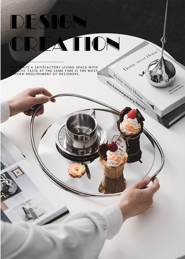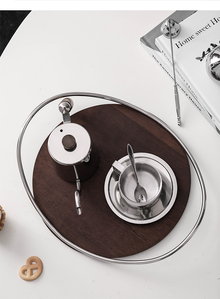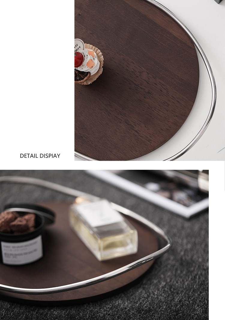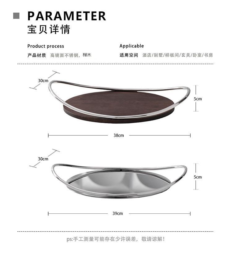 나무 스테인리스 거울 트레이 가정용 거실 차 컵 물 컵 저장 빵 커피 플레이트 빛 고급 하이 엔드