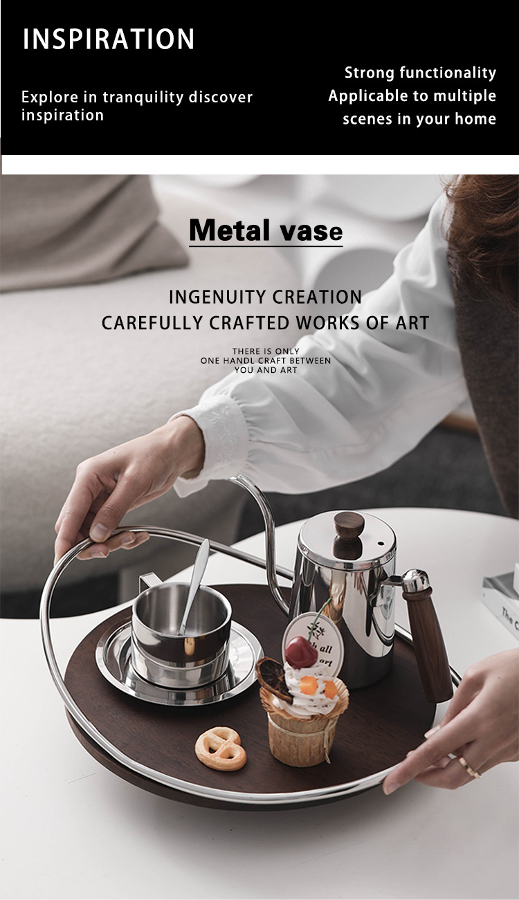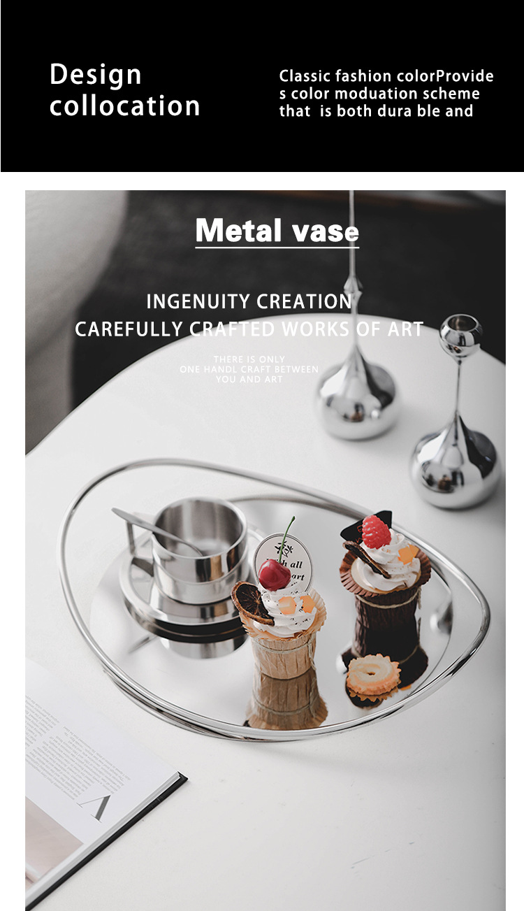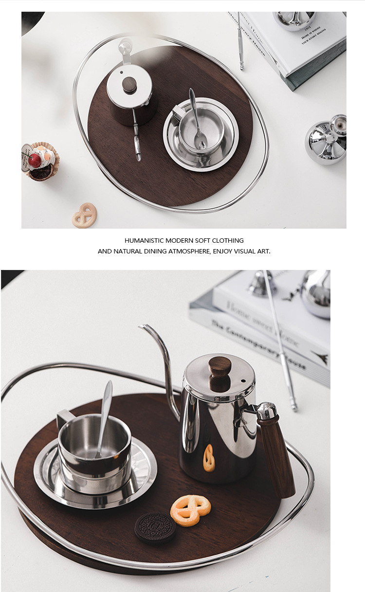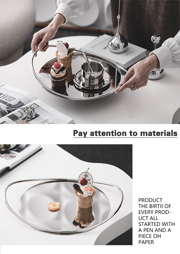 나무 스테인리스 거울 트레이 가정용 거실 차 컵 물 컵 저장 빵 커피 플레이트 빛 고급 하이 엔드