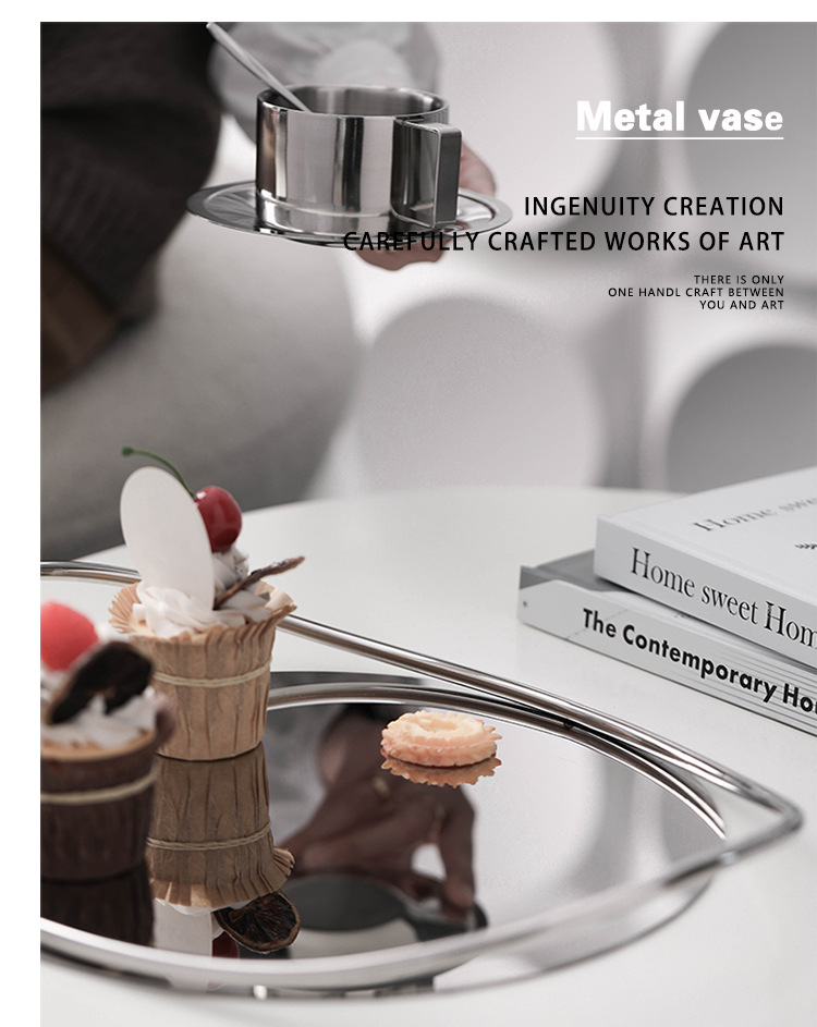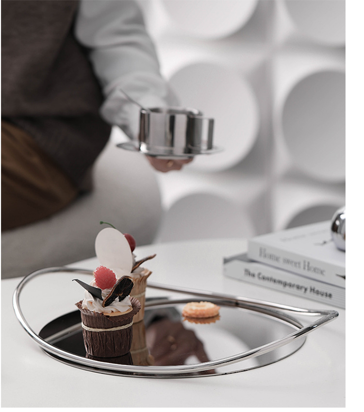 나무 스테인리스 거울 트레이 가정용 거실 차 컵 물 컵 저장 빵 커피 플레이트 빛 고급 하이 엔드스토어 가기