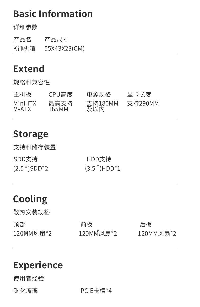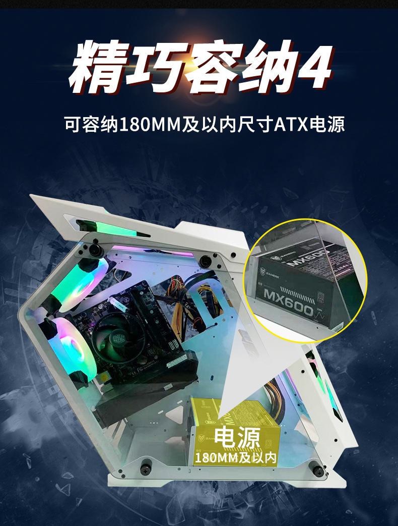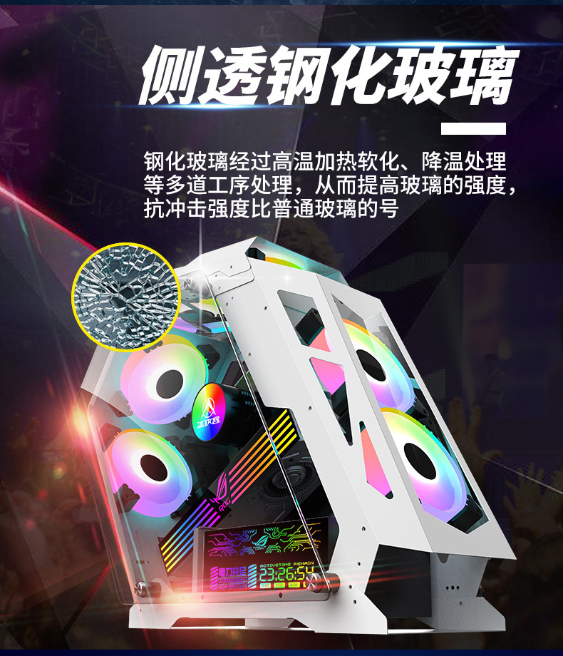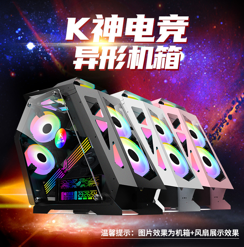 K神侧面透明钢化玻璃游戏异形电脑机箱M-ATX 4 PCIE卡槽电脑机箱