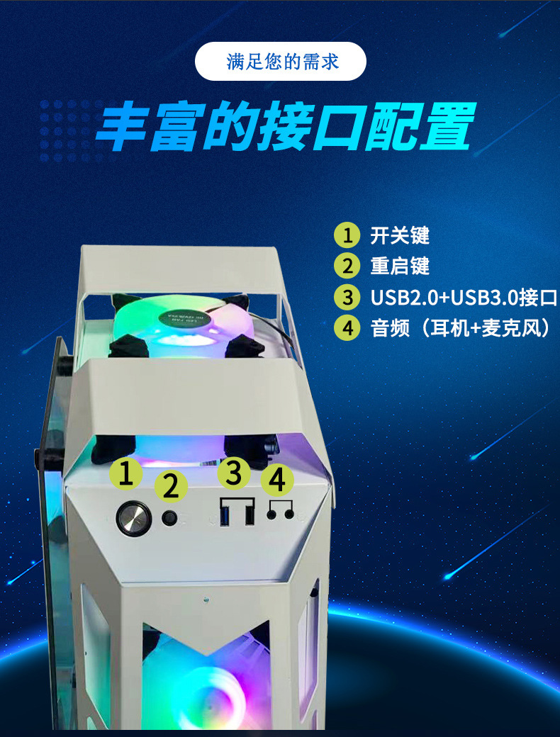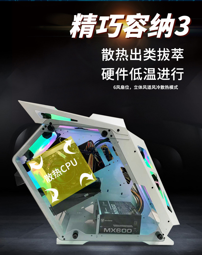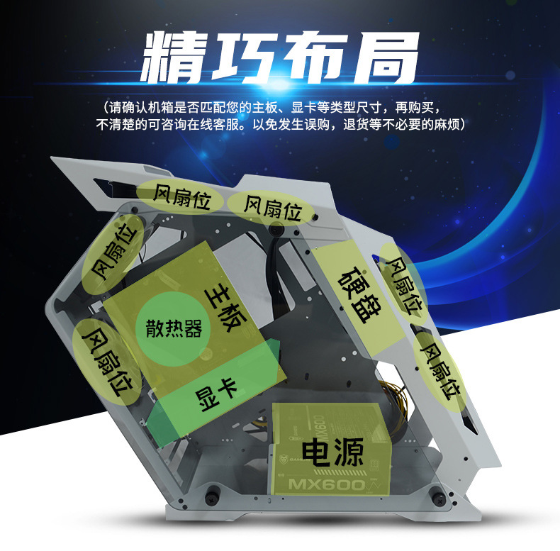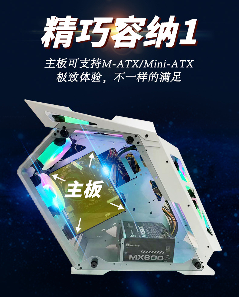 K神侧面透明钢化玻璃游戏异形电脑机箱M-ATX 4 PCIE卡槽电脑机箱