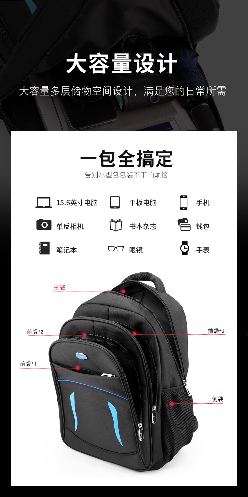 공장 도매 새로운 국경 배낭 대용량 옥스포드 섬유 컴퓨터 가방 레저 가방 유행 남성과 여성의 배낭