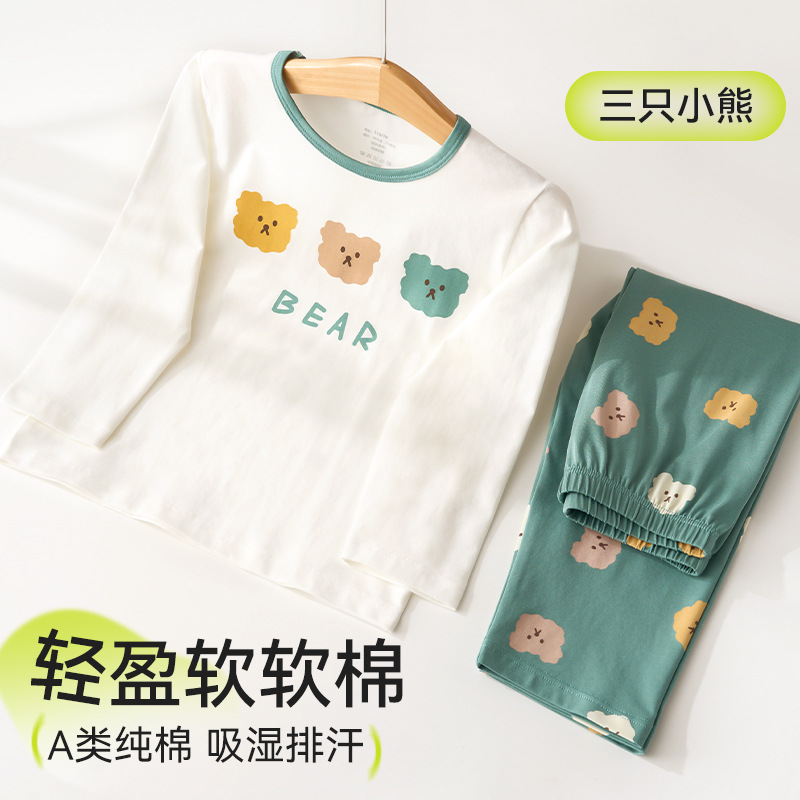 어린이 잠옷 순수 면화 얇은 봄, 가을 속옷 세트 어린이 긴팔 가을 옷과 가을 바지 2025 소녀 가정 의류스토어 가기