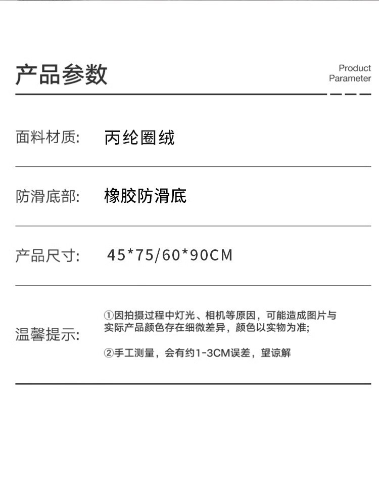 • [클리어] Ruoshui-블랙-폴리프로필렌 루프 벨벳 바닥 매트