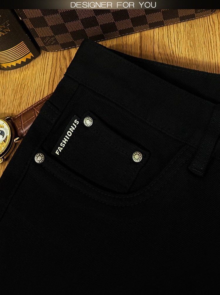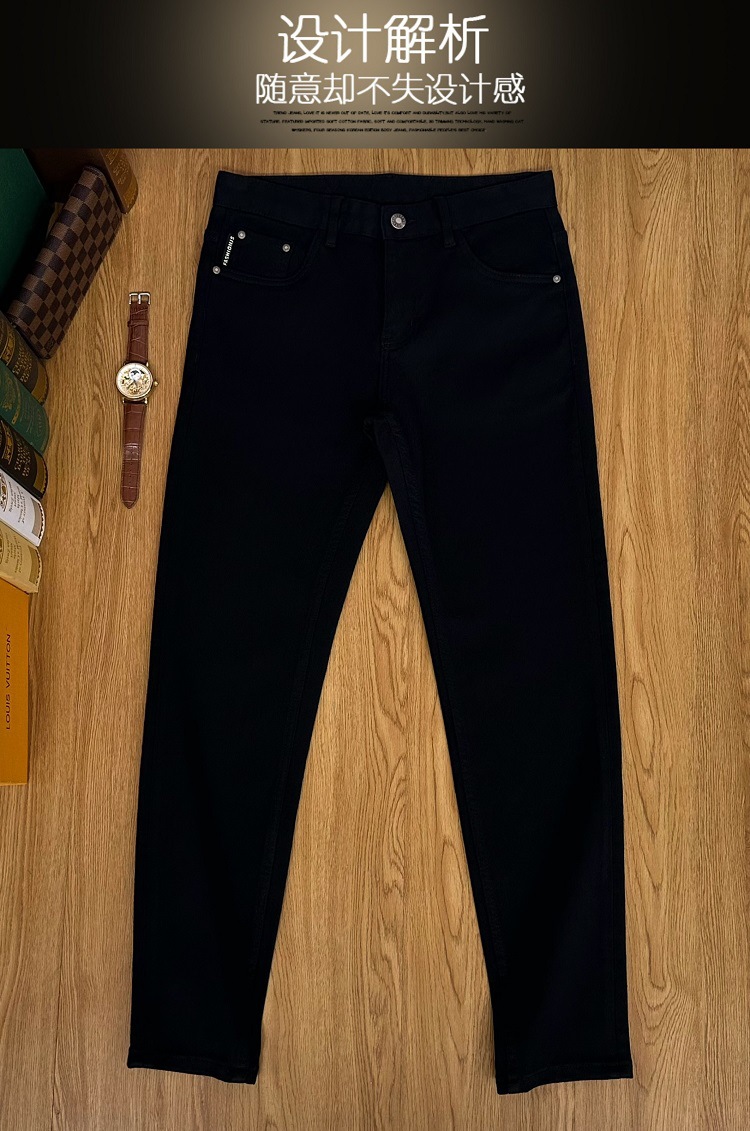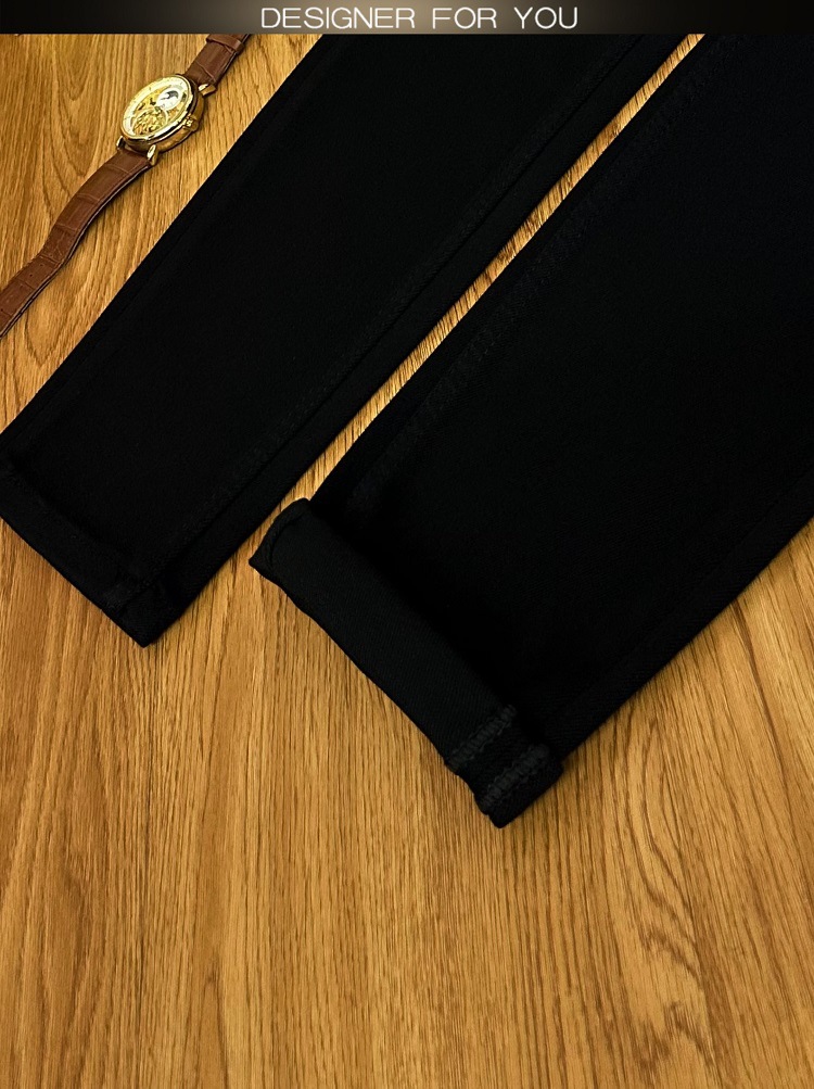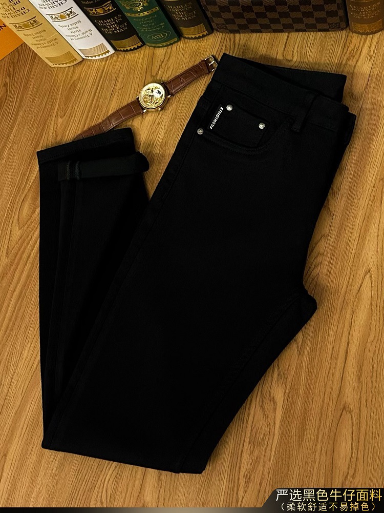 검은 청바지 남자의 가을과 겨울 두꺼운 유행 브랜드 하이 엔드 탄성 슬림 핏 작은 발 새로운 유행 페이드 방지 남성용 바지스토어 가기