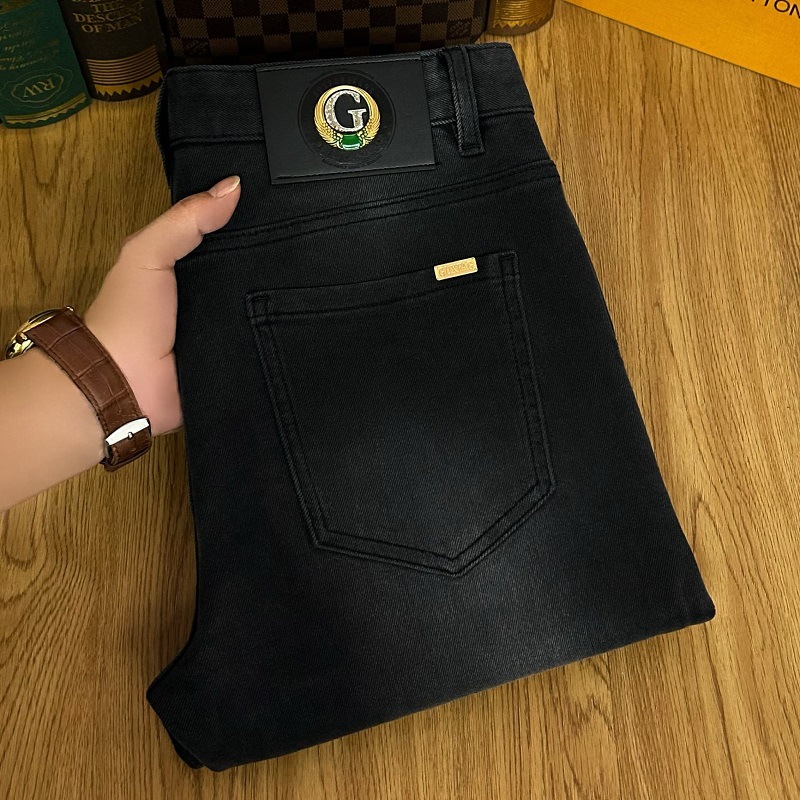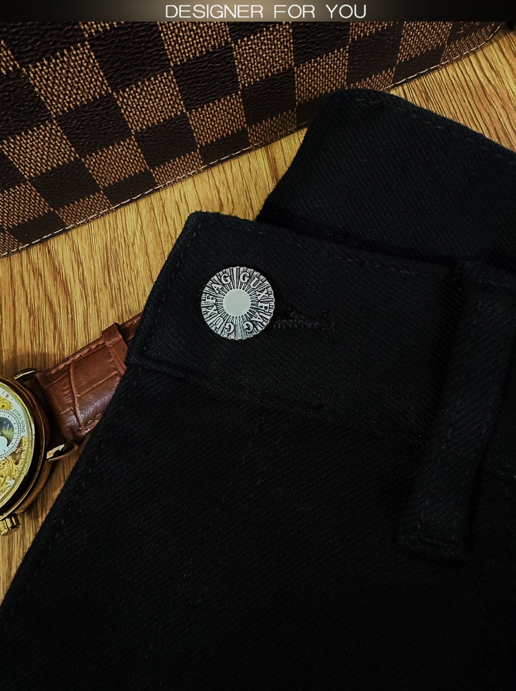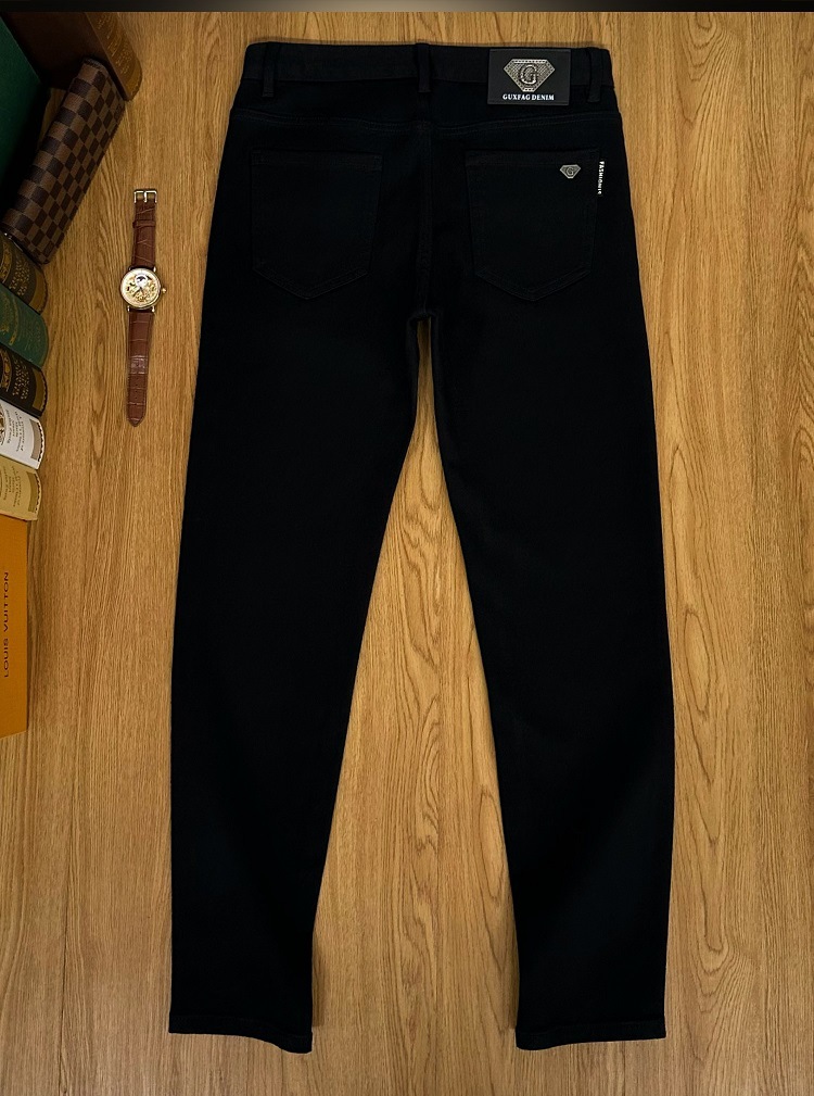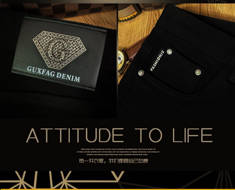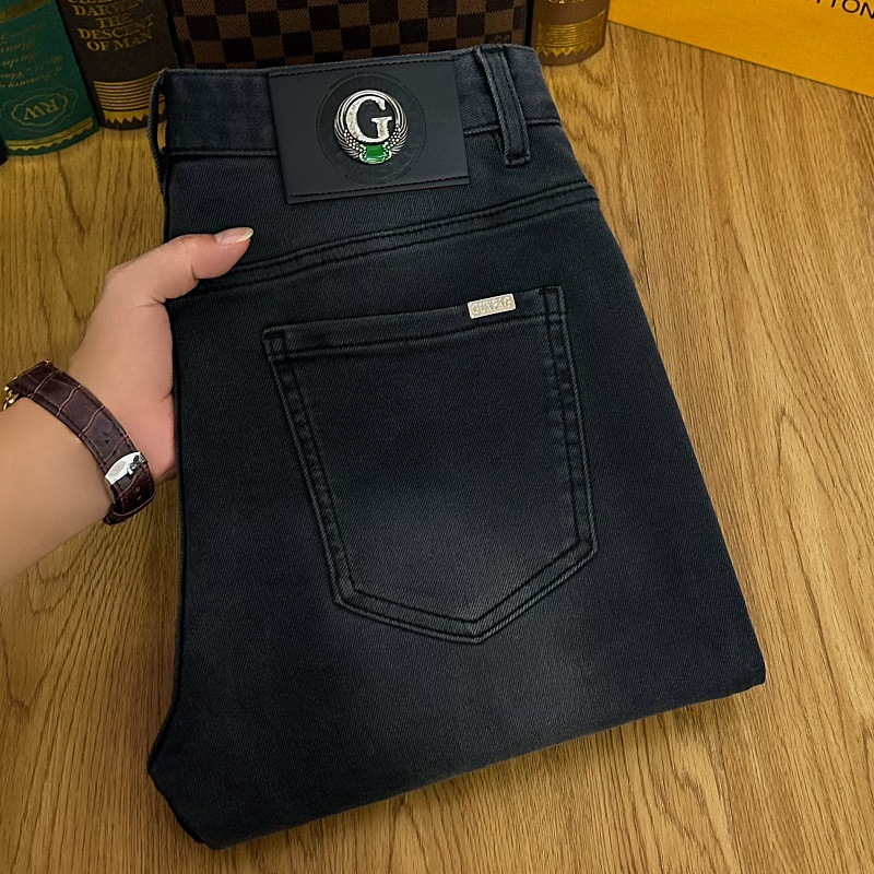 검은 청바지 남자의 가을과 겨울 두꺼운 유행 브랜드 하이 엔드 탄성 슬림 핏 작은 발 새로운 유행 페이드 방지 남성용 바지스토어 가기