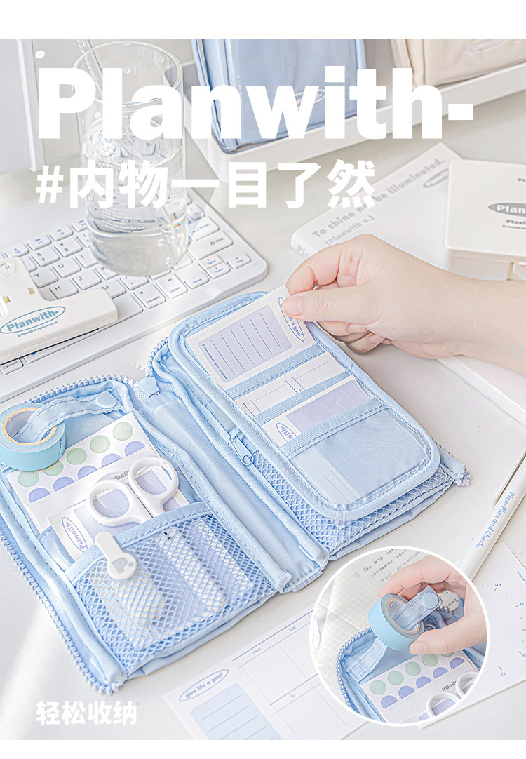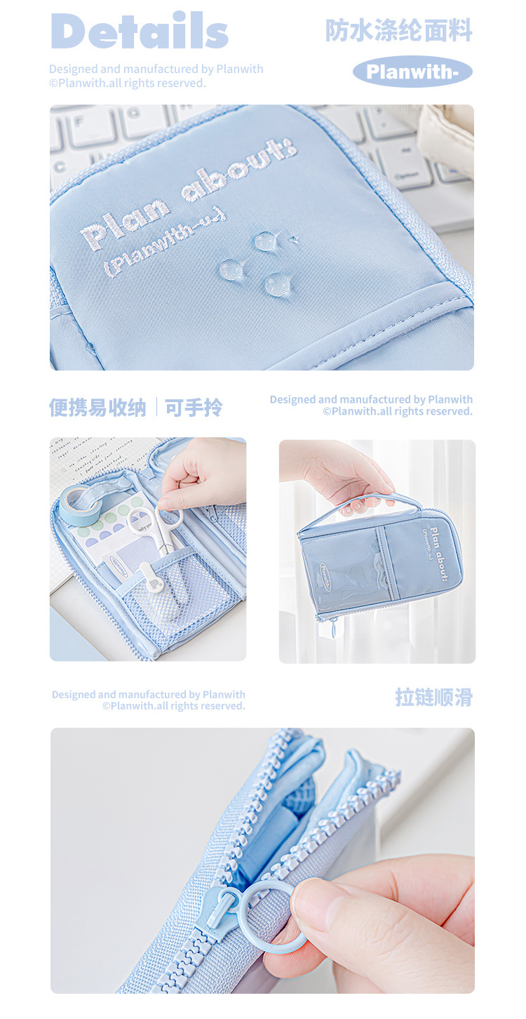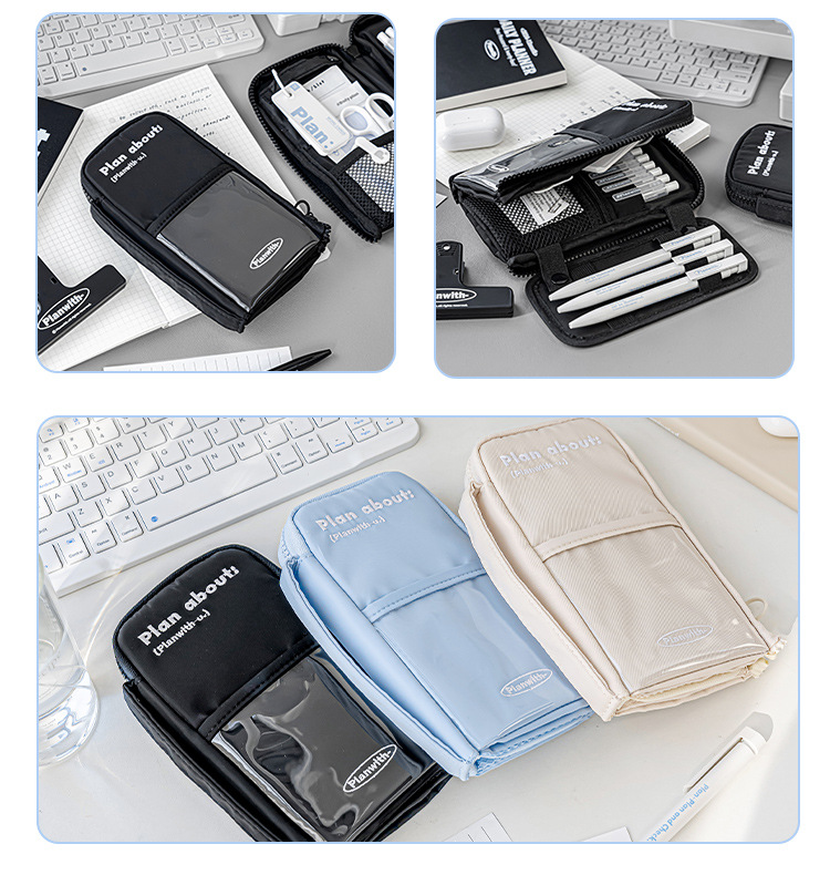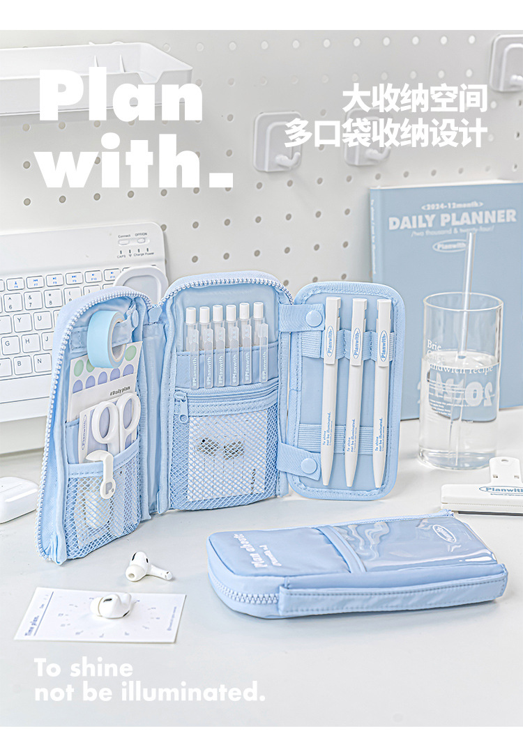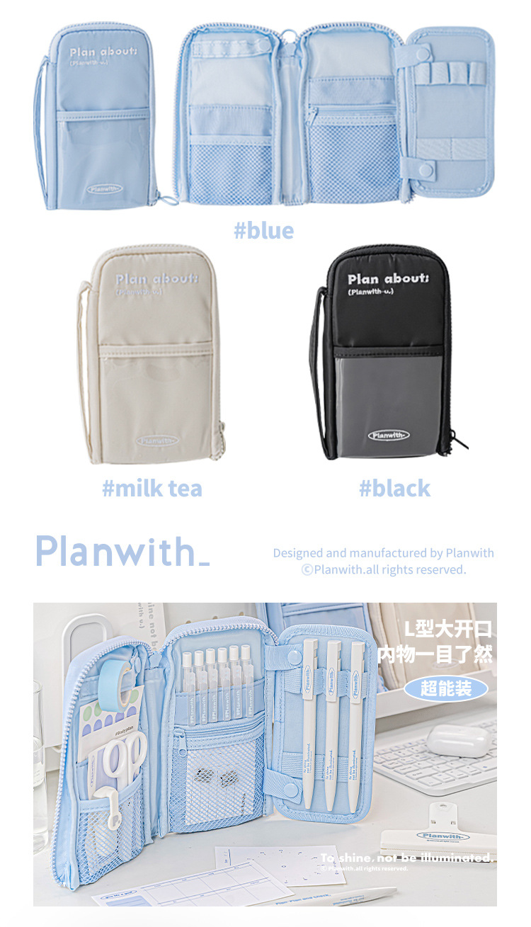 Planwith Friends Plan Stand Series 학생들을위한 고용량 3 오픈 분리 가능한 연필 케이스