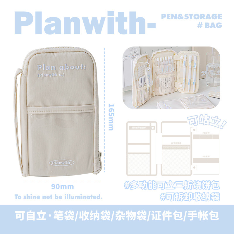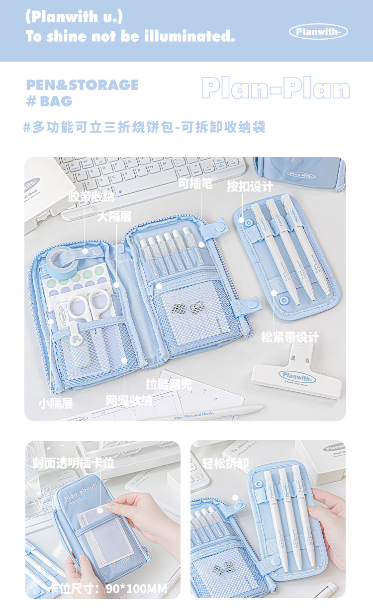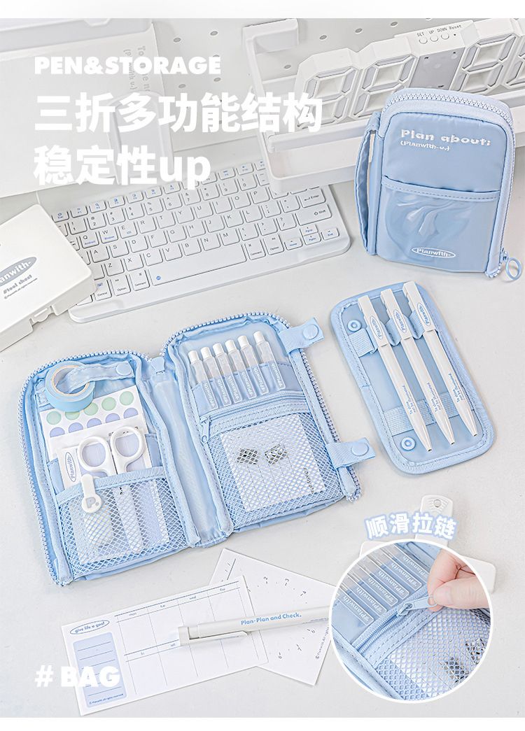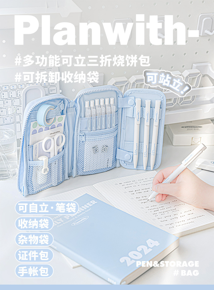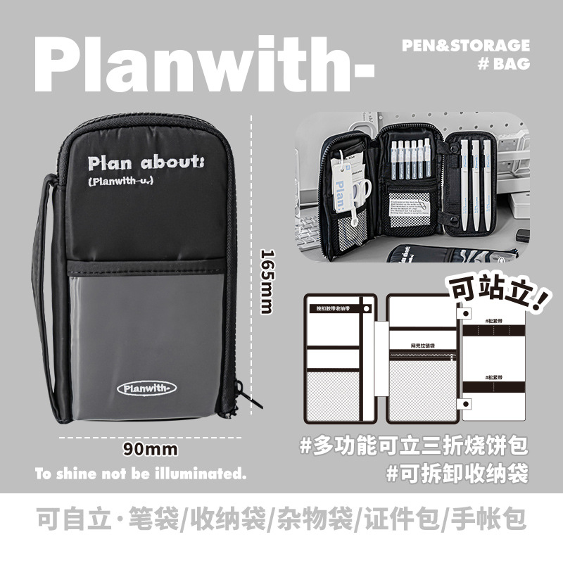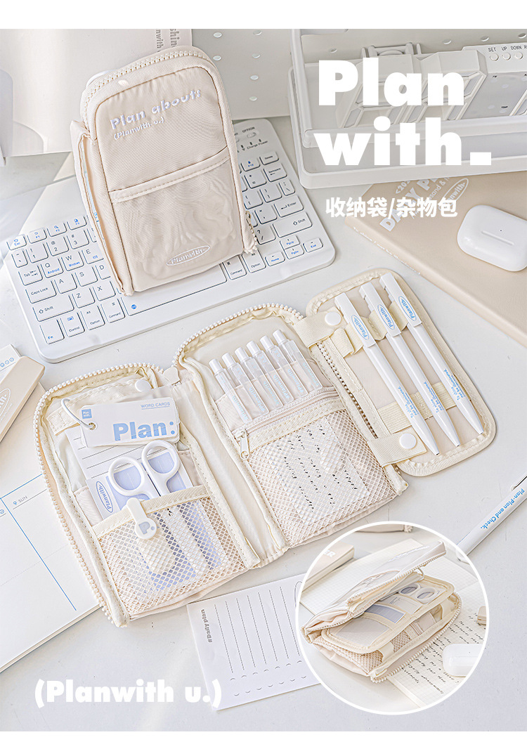 Planwith Friends Plan Stand Series 학생들을위한 고용량 3 오픈 분리 가능한 연필 케이스