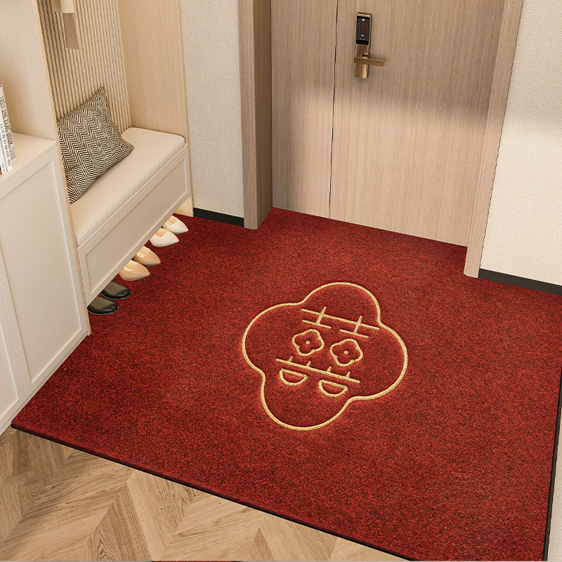 문에 들어가기위한 두꺼운 빨간 바닥 매트 문 매트 결혼식 축제 얼룩 방지 잘린 고급 자수 복도 카펫