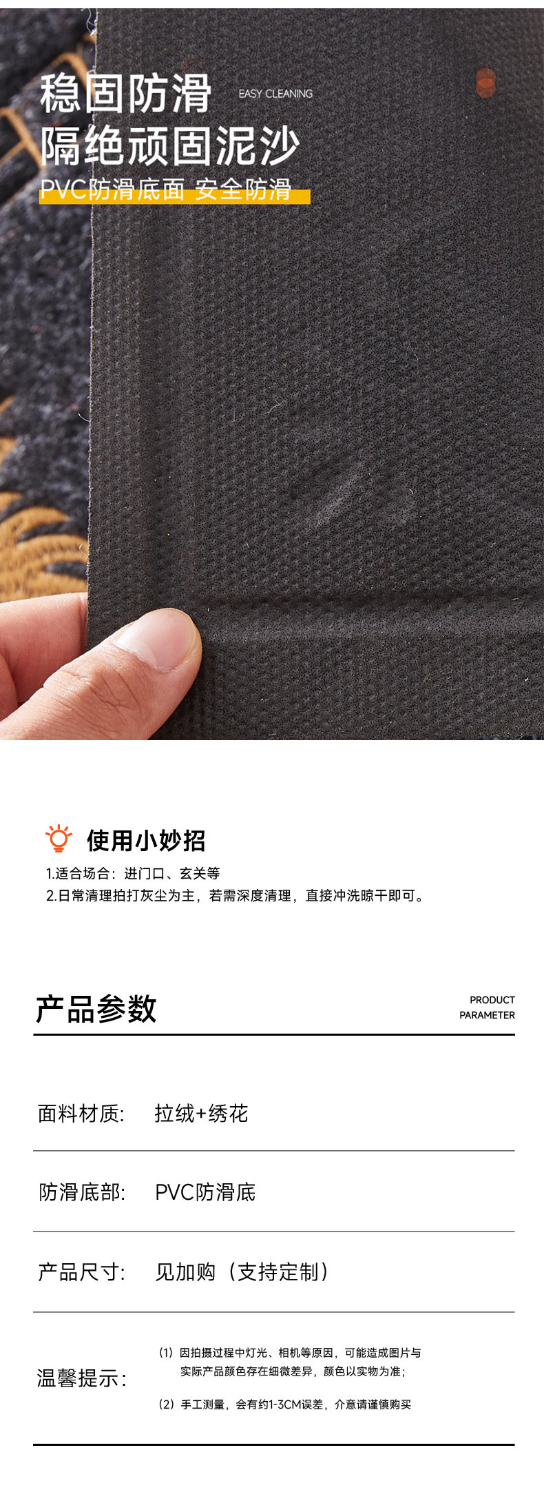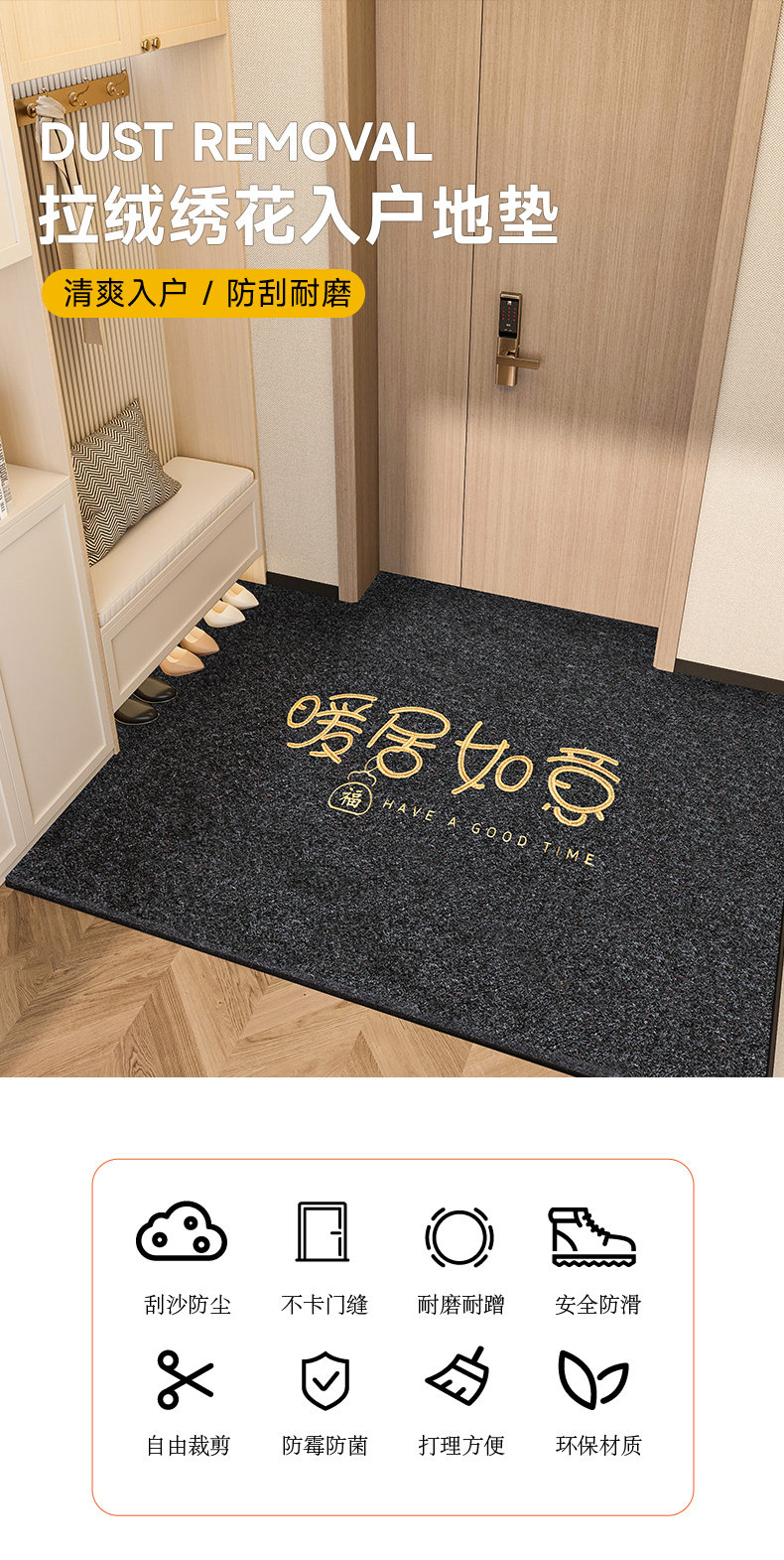 • 따뜻한 집 Ruyi 검은 브러시 자수 바닥 매트