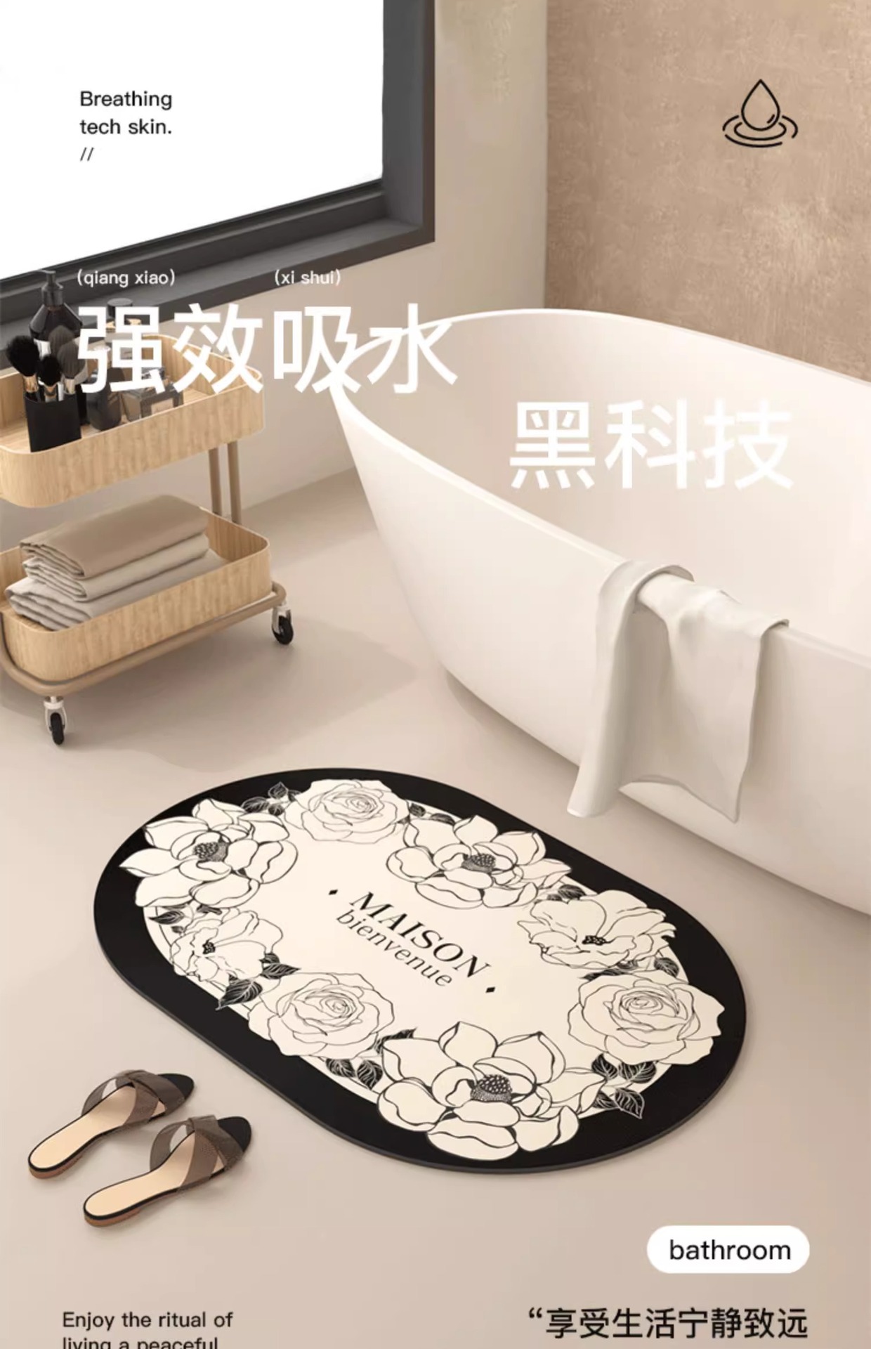 • 60CM * 90CM [욕실 바닥 매트 흡수성 미끄럼 방지]]