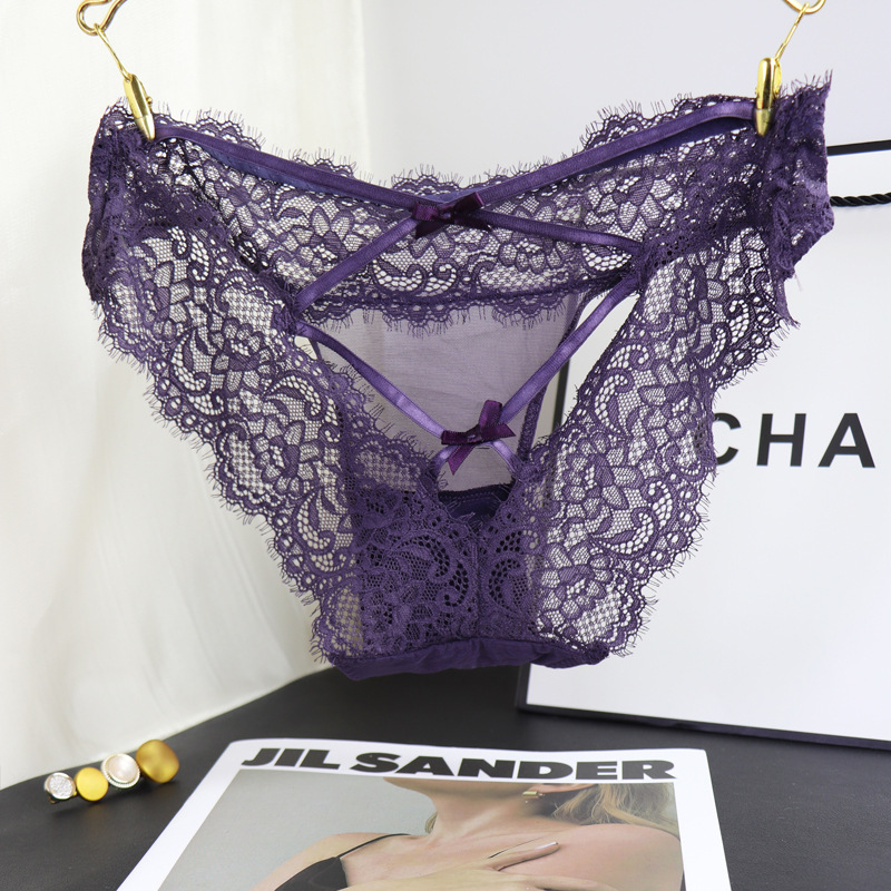 유럽과 미국의 섹시한 핫 속눈썹 레이스 속옷 여성의 중공 관점 유혹 패션 브리프 원활한 얇은 속옷