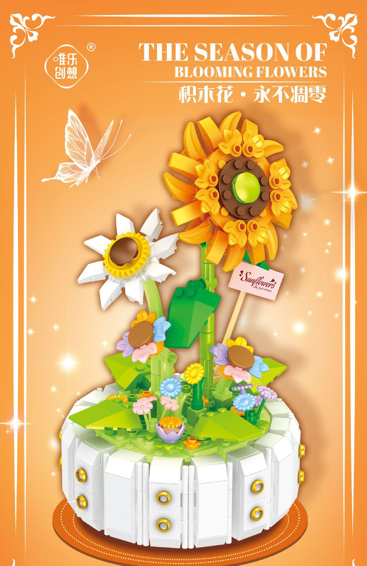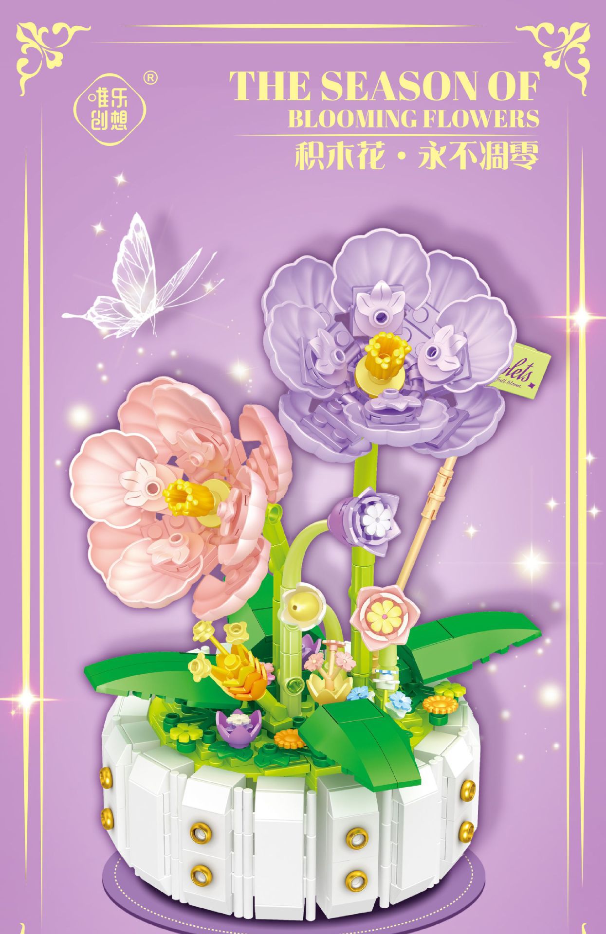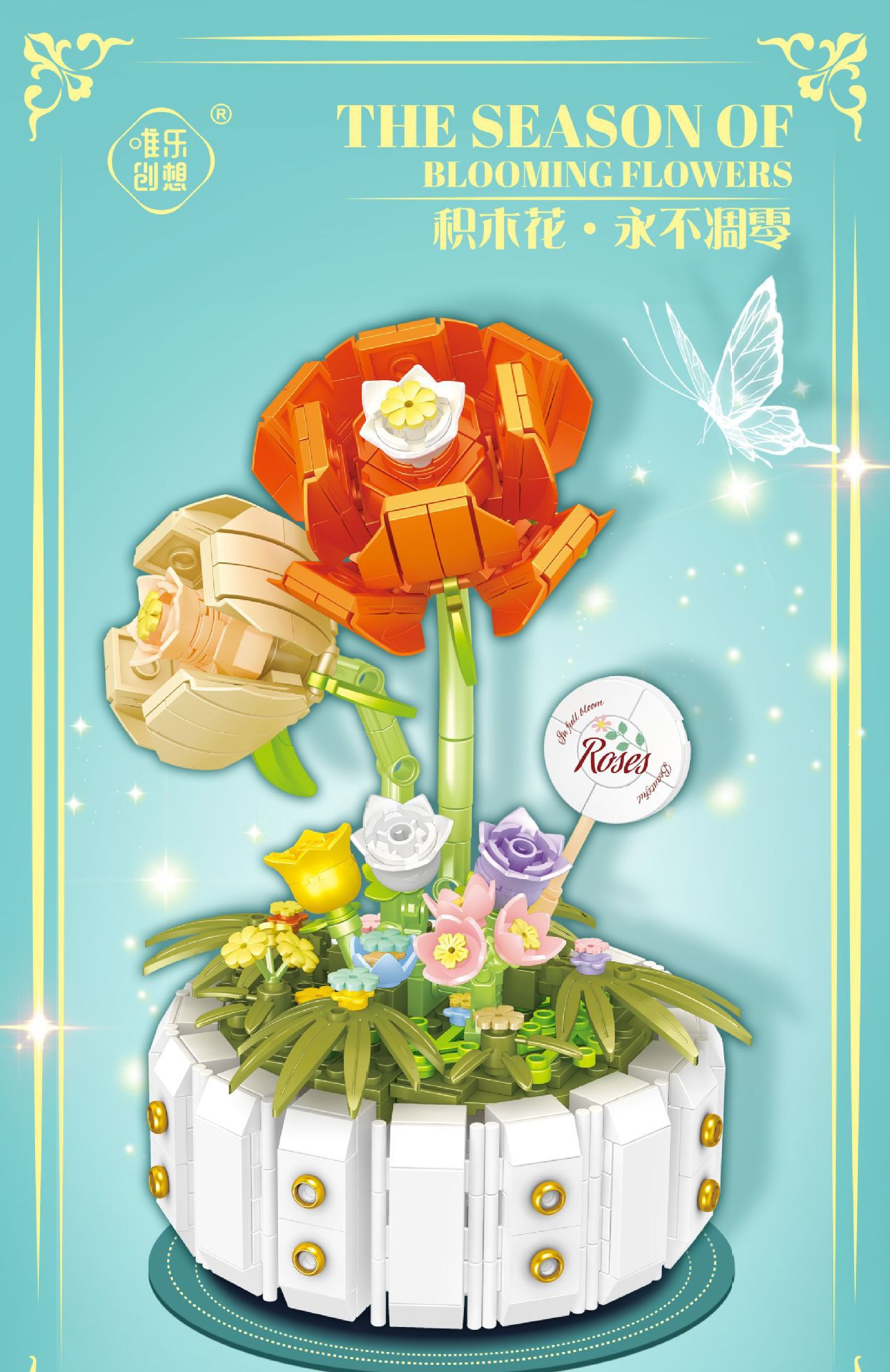 레고 퍼즐 조립 장난감 빌딩 블록 장식품과 호환되는 Weile 창조적 인 시뮬레이션 꽃 시리즈 diy스토어 가기