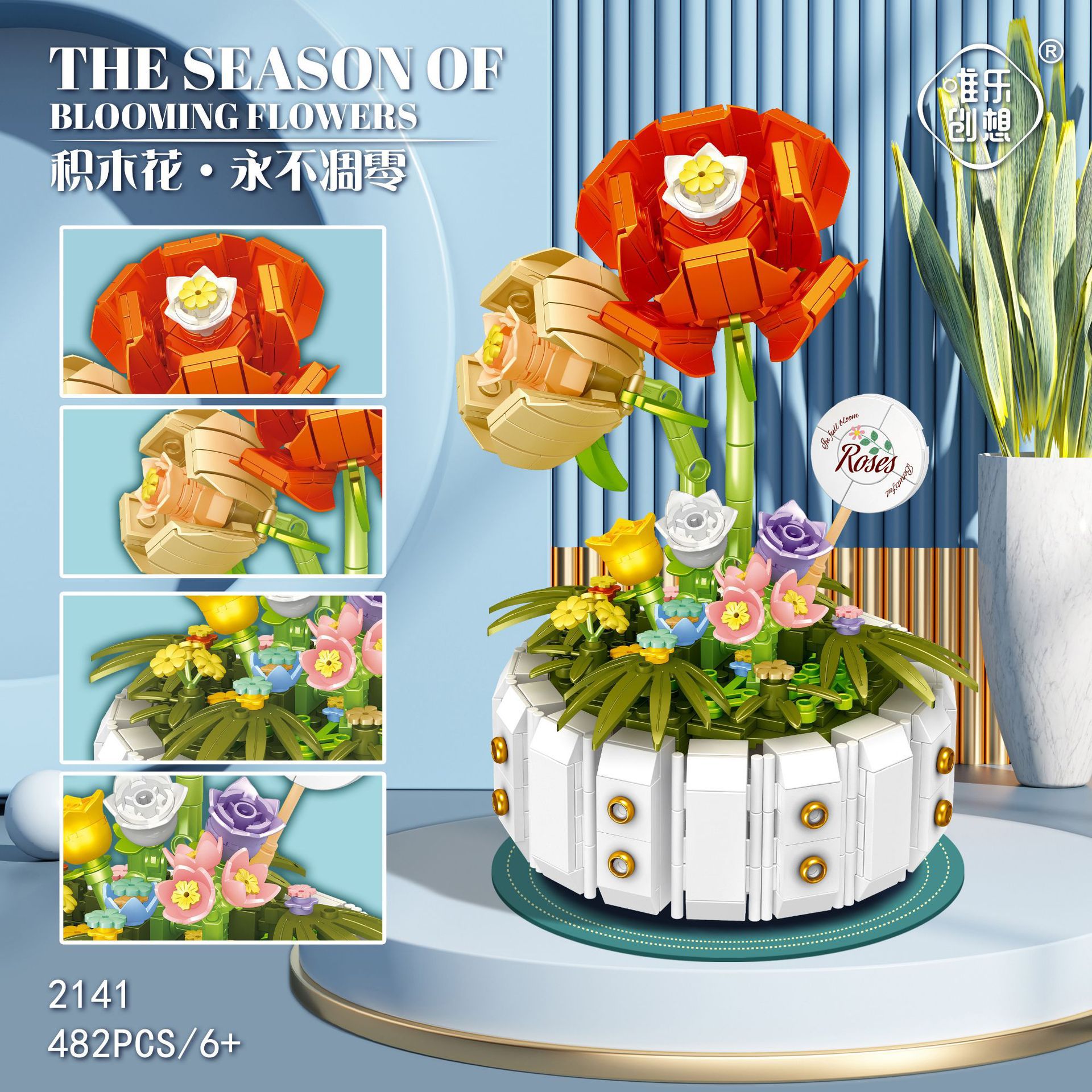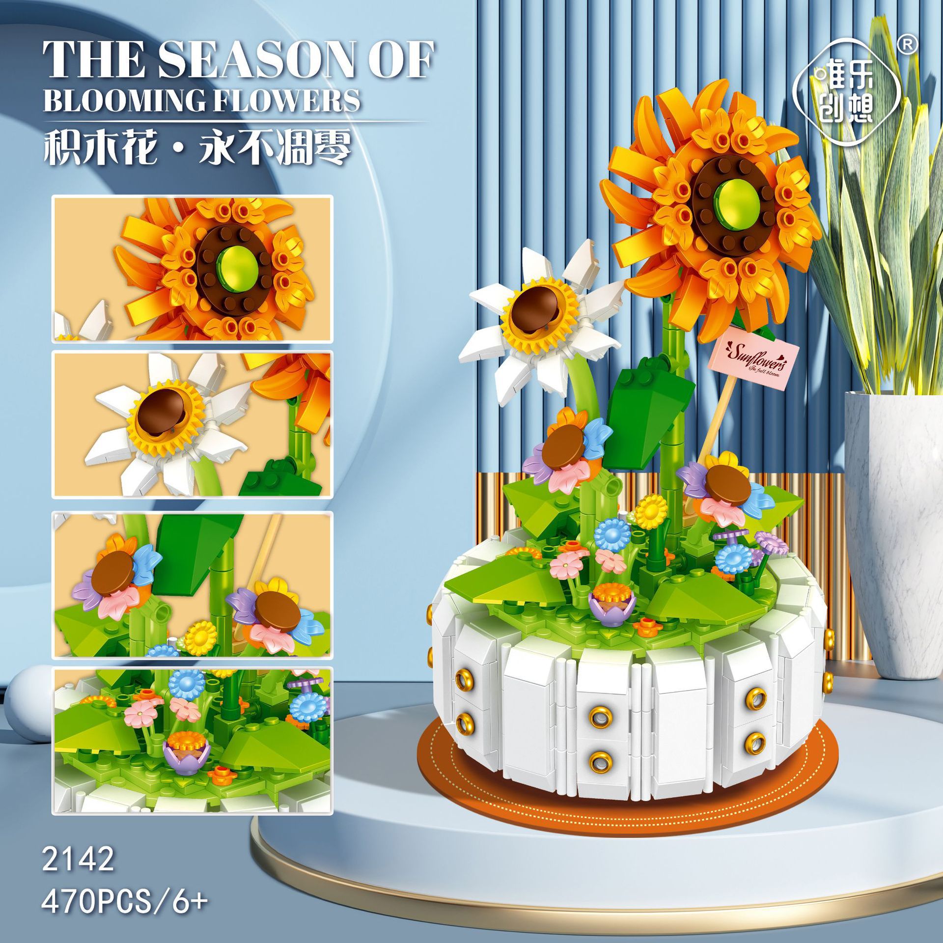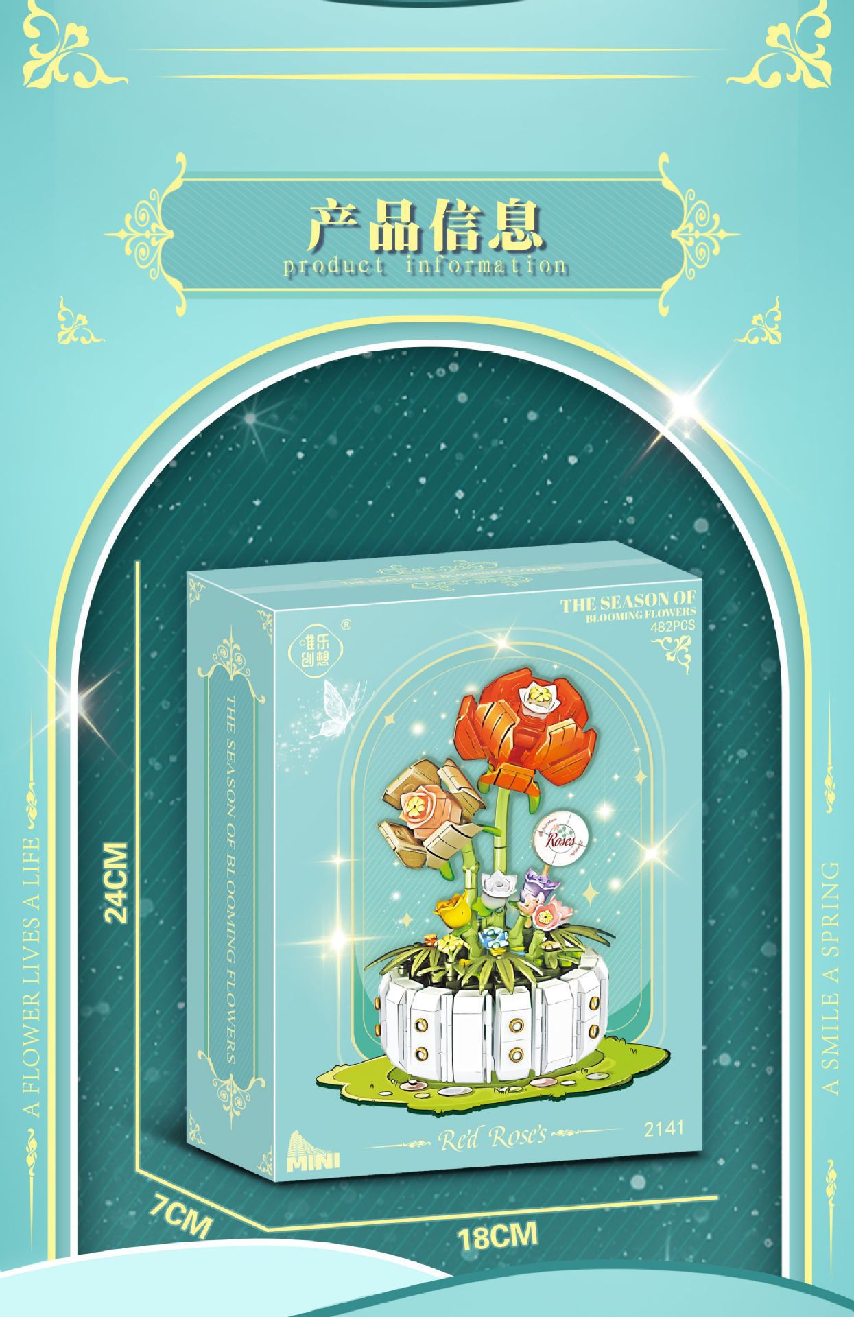 레고 퍼즐 조립 장난감 빌딩 블록 장식품과 호환되는 Weile 창조적 인 시뮬레이션 꽃 시리즈 diy스토어 가기