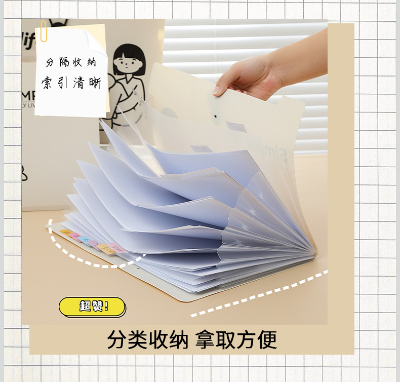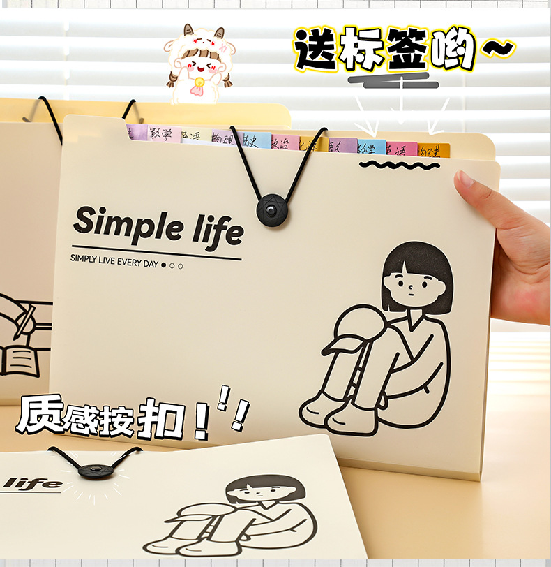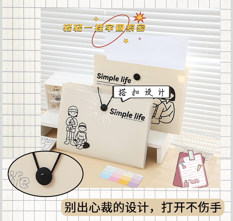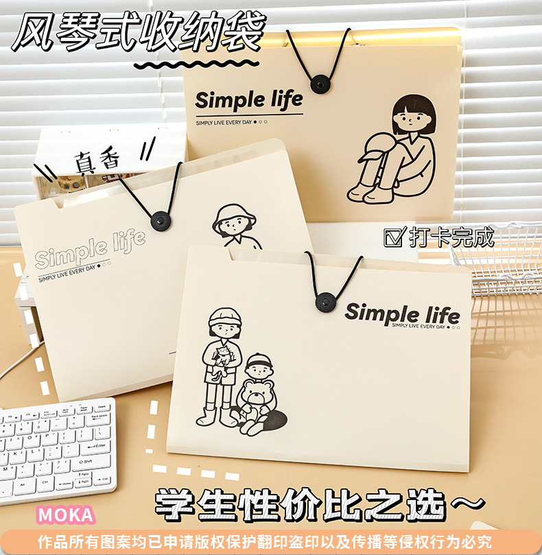 Xiaomeng 간단한 생활 시리즈 5 에서 8 로 12 로 버클 폴더 주제 분류 테스트 종이 저장 가방 오르간 가방스토어 가기