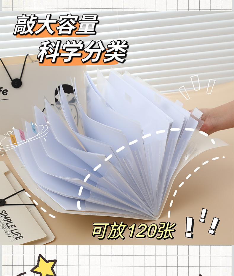 Xiaomeng 간단한 생활 시리즈 5 에서 8 로 12 로 버클 폴더 주제 분류 테스트 종이 저장 가방 오르간 가방