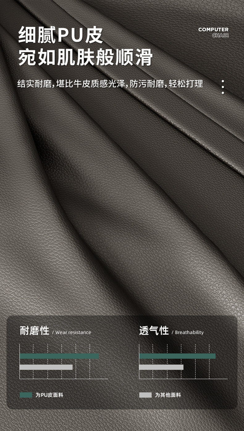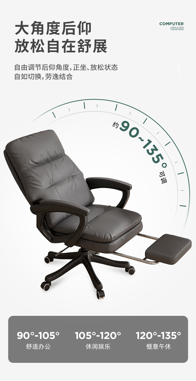 • 135 는 누워, 다크 그레이 3-증거 PU 가죽
