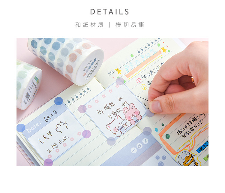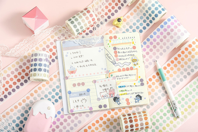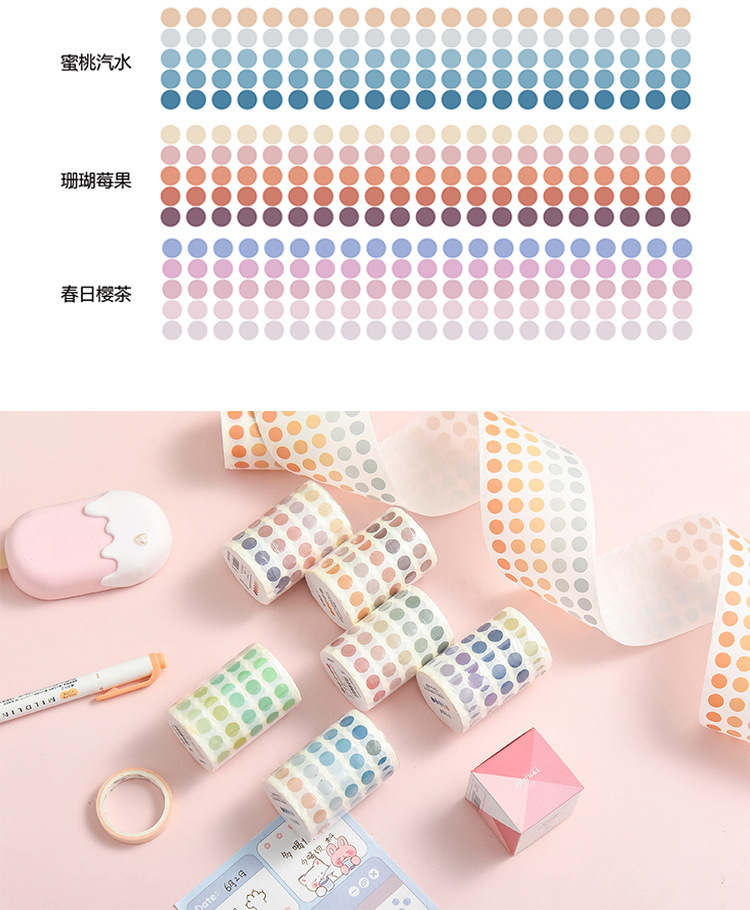 모란 디 컬러 기본 저널 컬러 폴카 도트 스티커 테이프 인 스타일 저널 및 종이 스티커