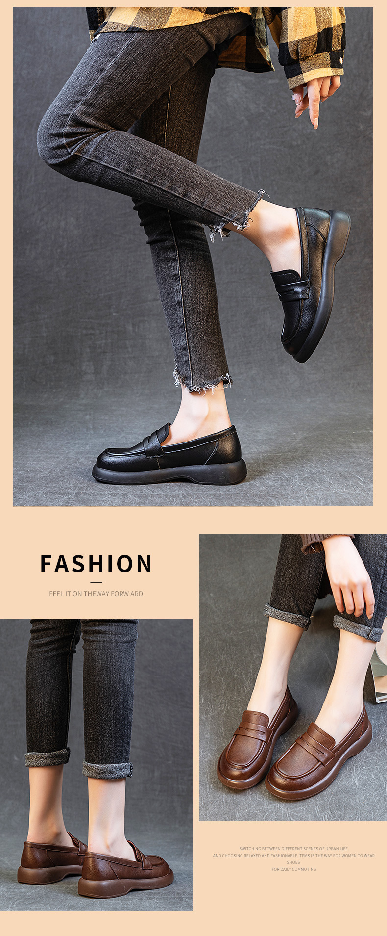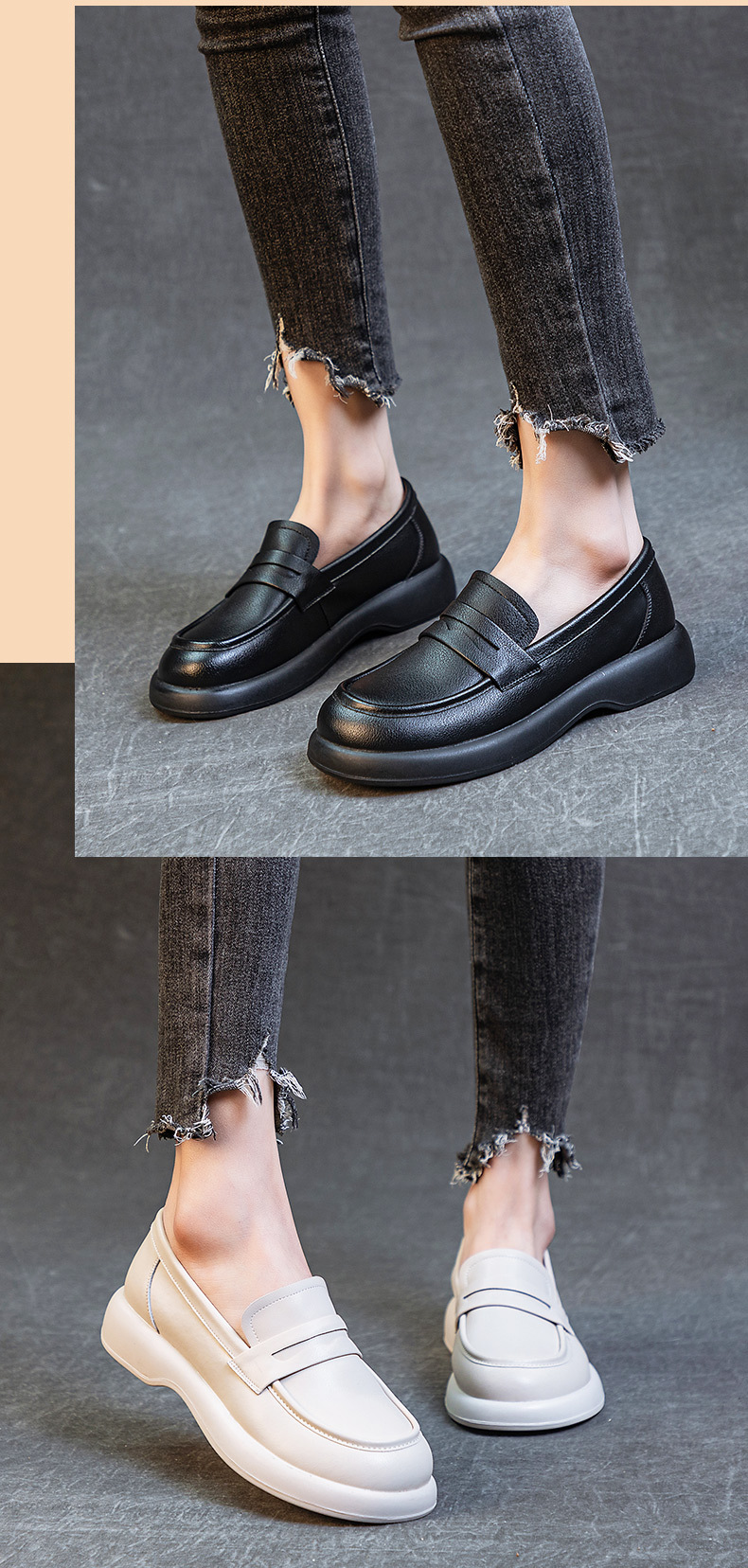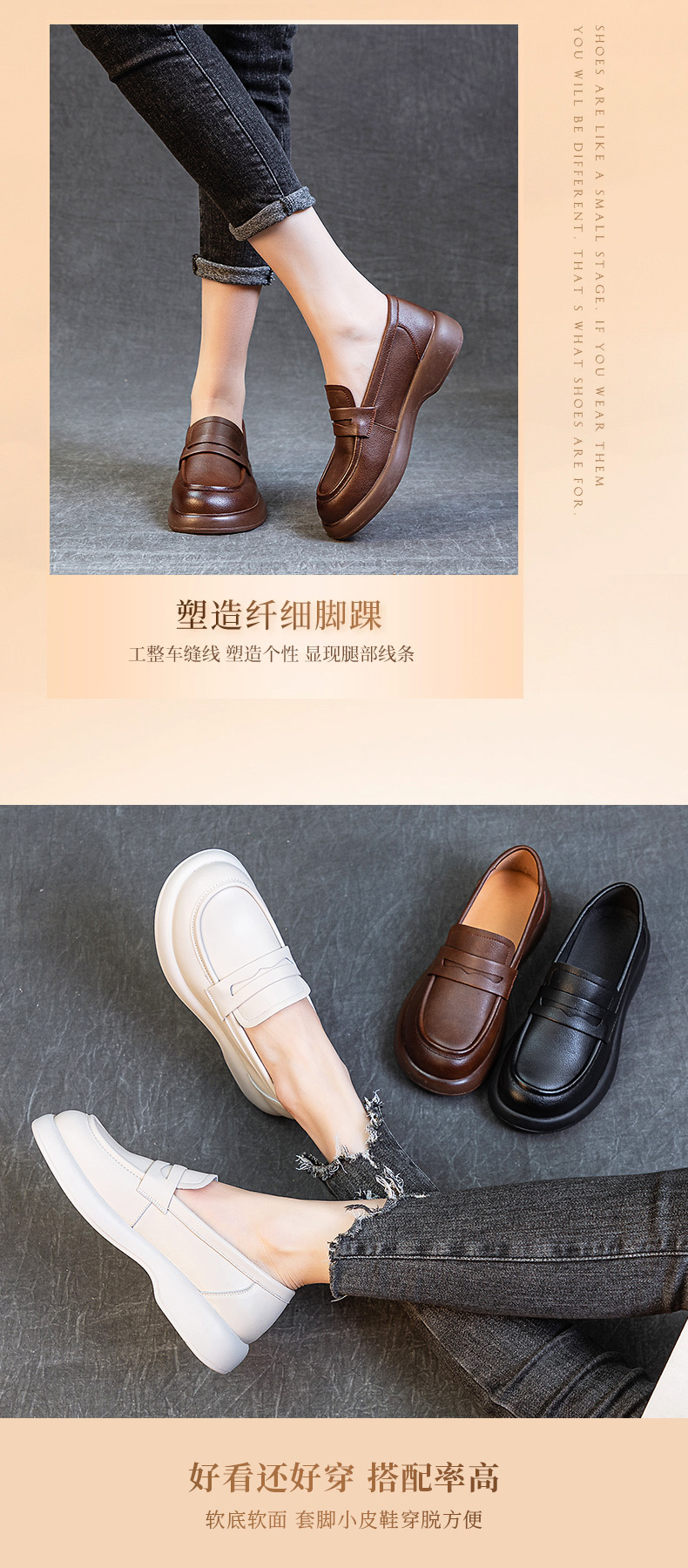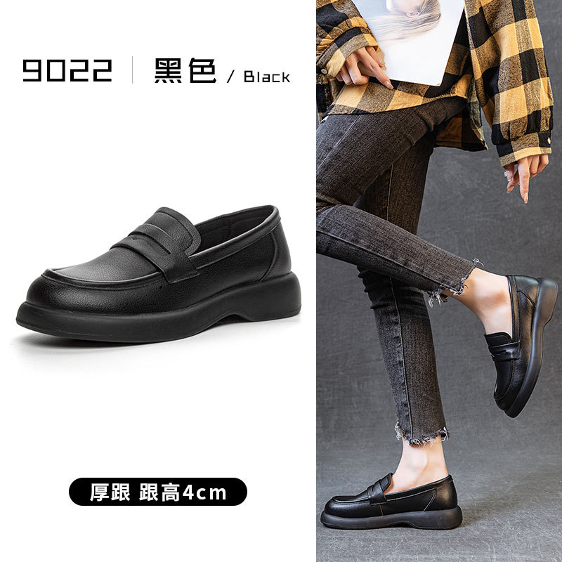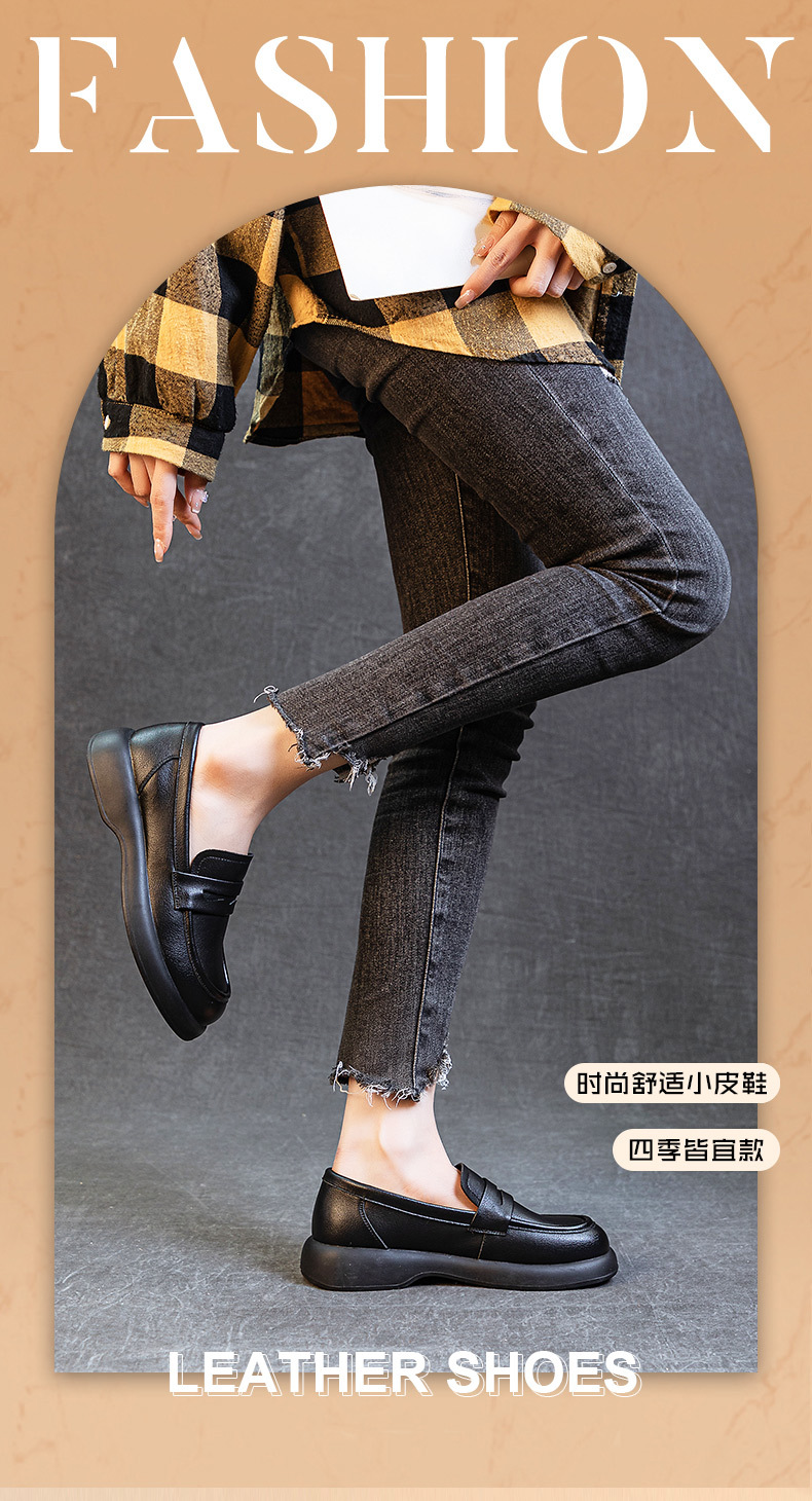 2025 봄 레트로 블랙 작은 가죽 신발 다목적 정품 가죽 영국 로퍼 여성을위한 두꺼운 밑창 신발 부드러운 밑창 슬립 온