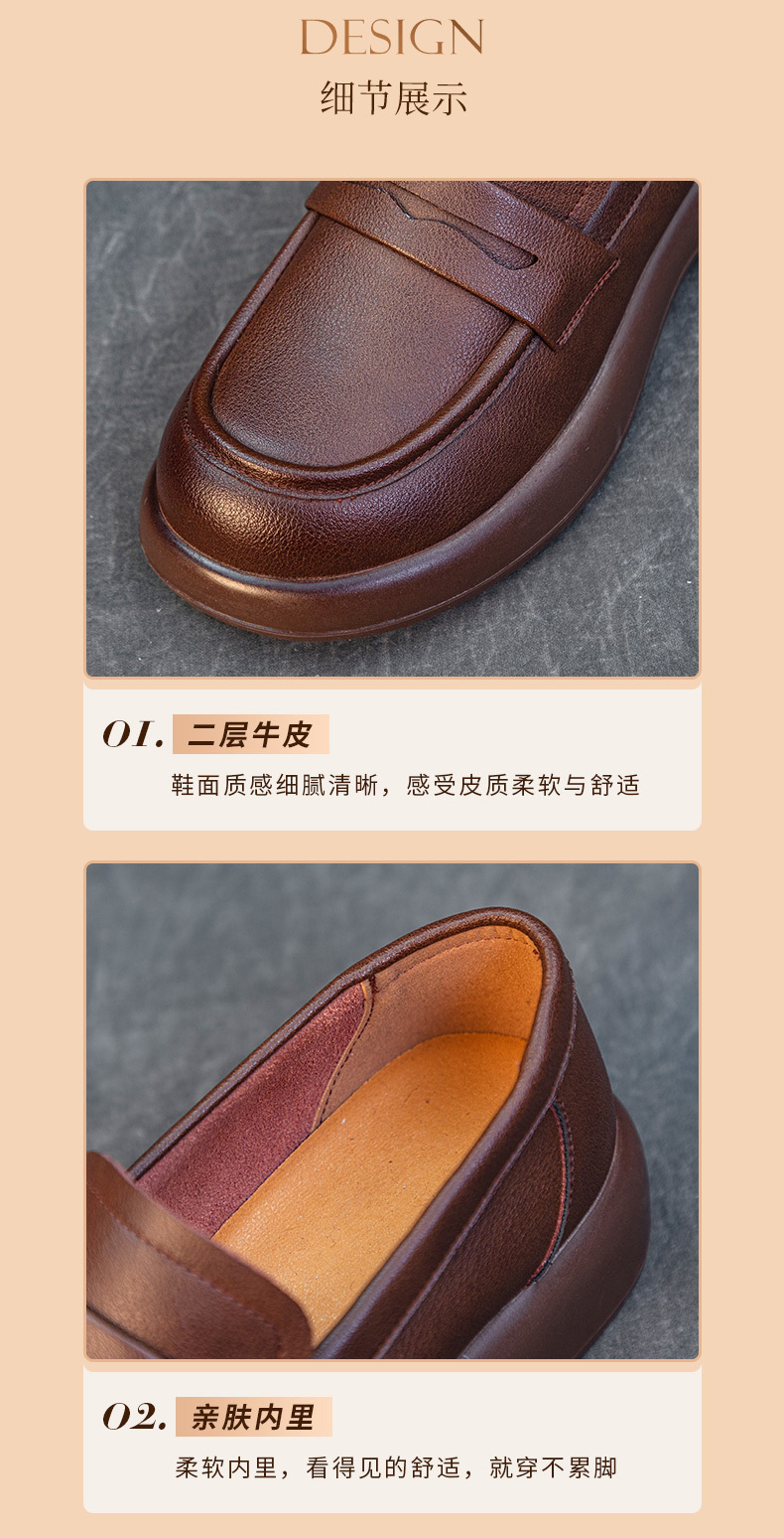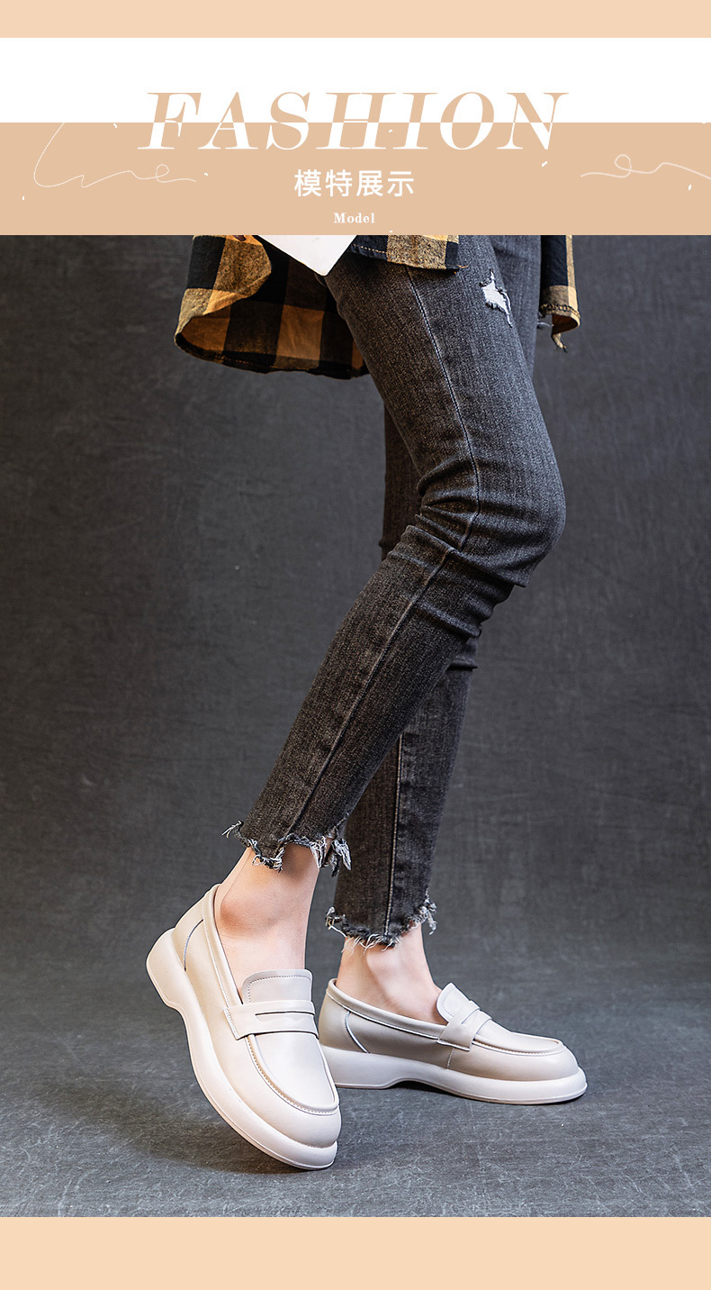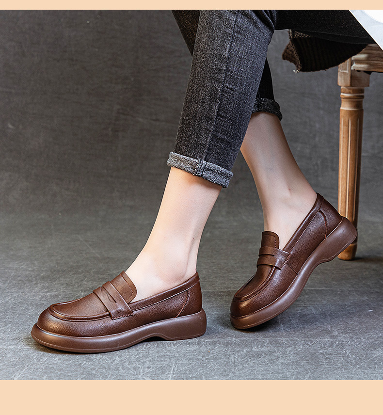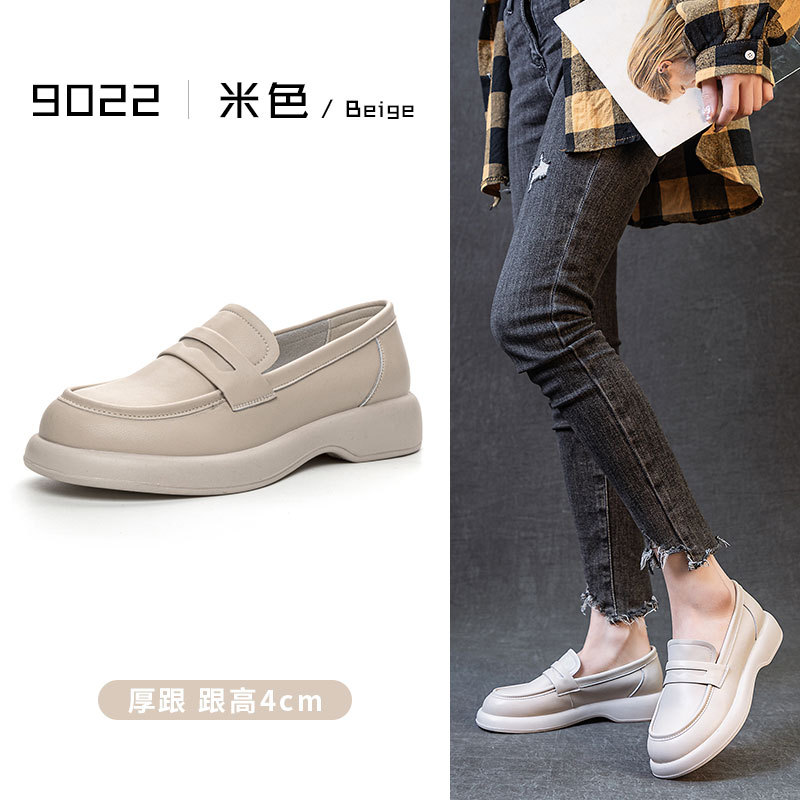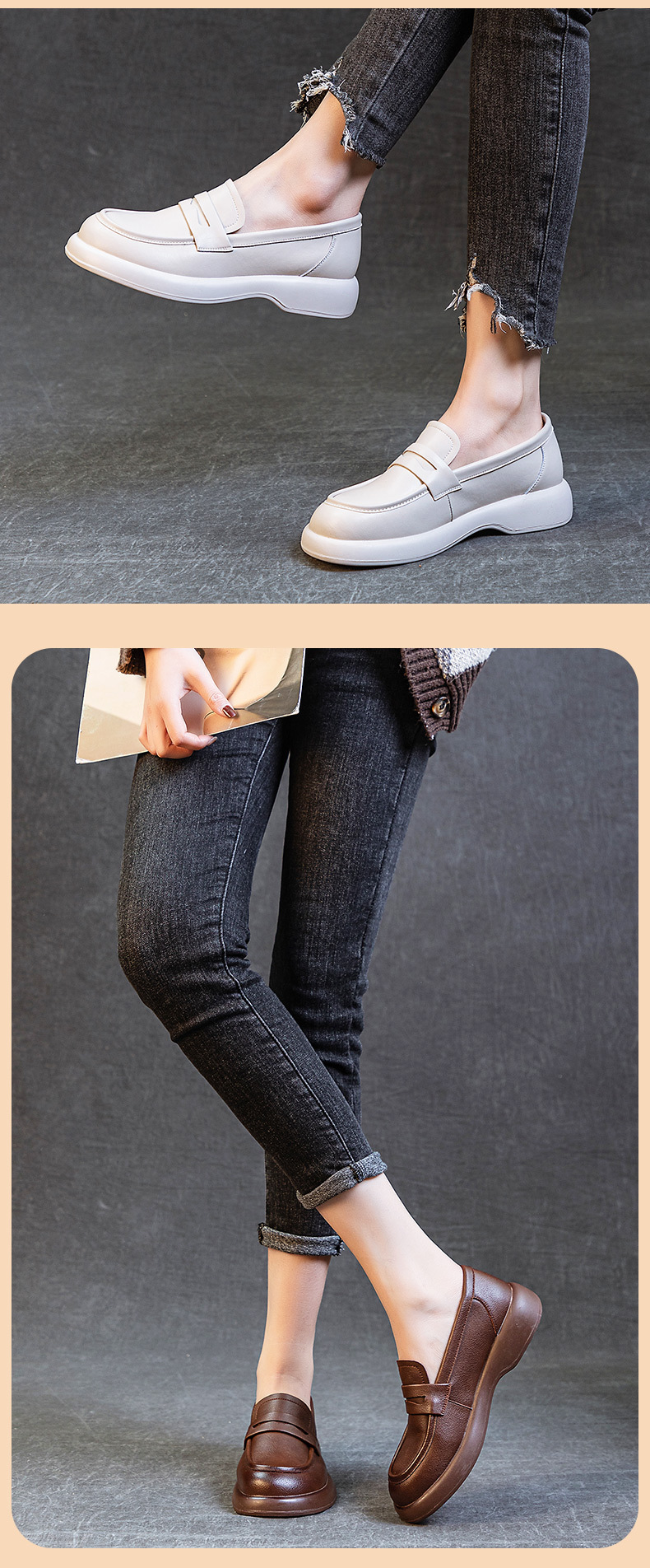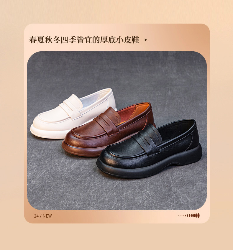 2025 봄 레트로 블랙 작은 가죽 신발 다목적 정품 가죽 영국 로퍼 여성을위한 두꺼운 밑창 신발 부드러운 밑창 슬립 온