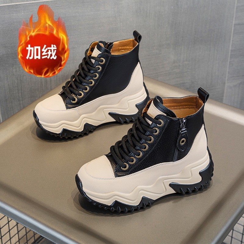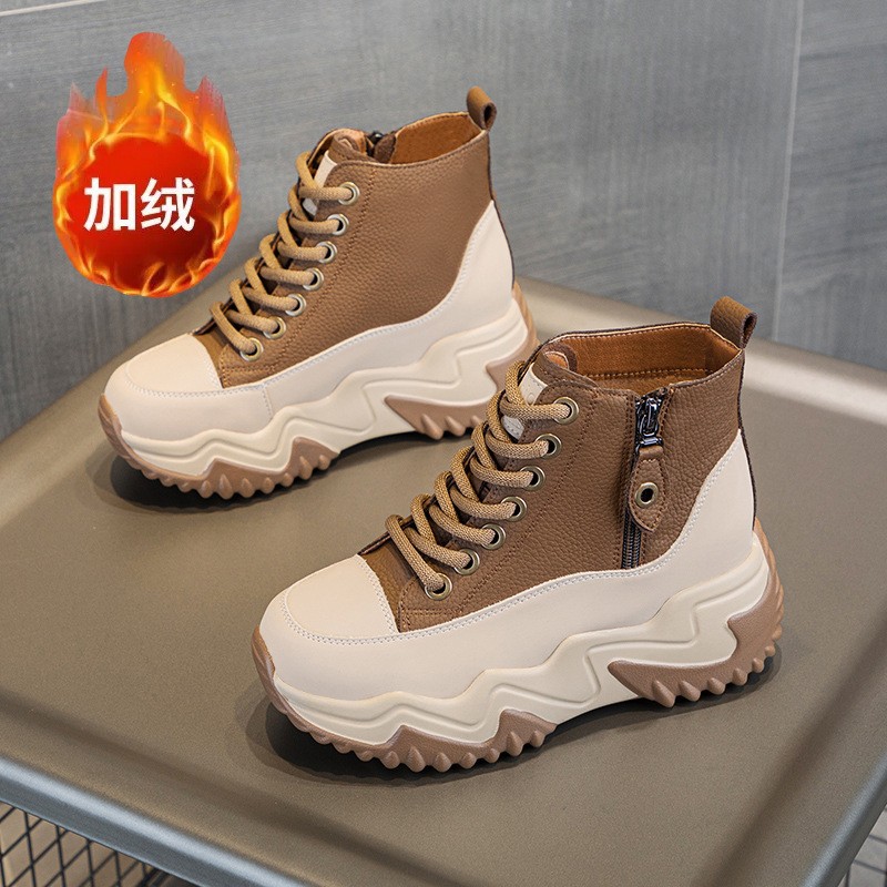 가을과 겨울 새로운 두꺼운 밑창 7cm 증가 캐주얼 여성면 신발 패션 레이스 업 지퍼 하이 탑 여성 신발스토어 가기