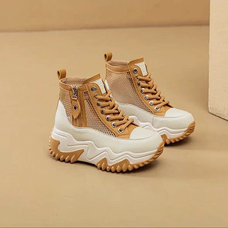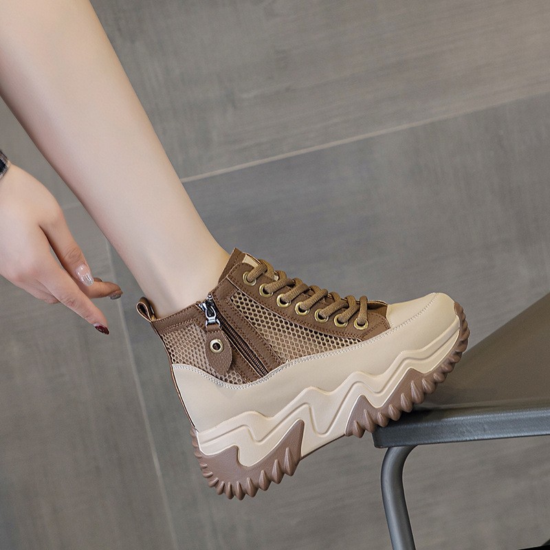 가을과 겨울 새로운 두꺼운 밑창 7cm 증가 캐주얼 여성면 신발 패션 레이스 업 지퍼 하이 탑 여성 신발