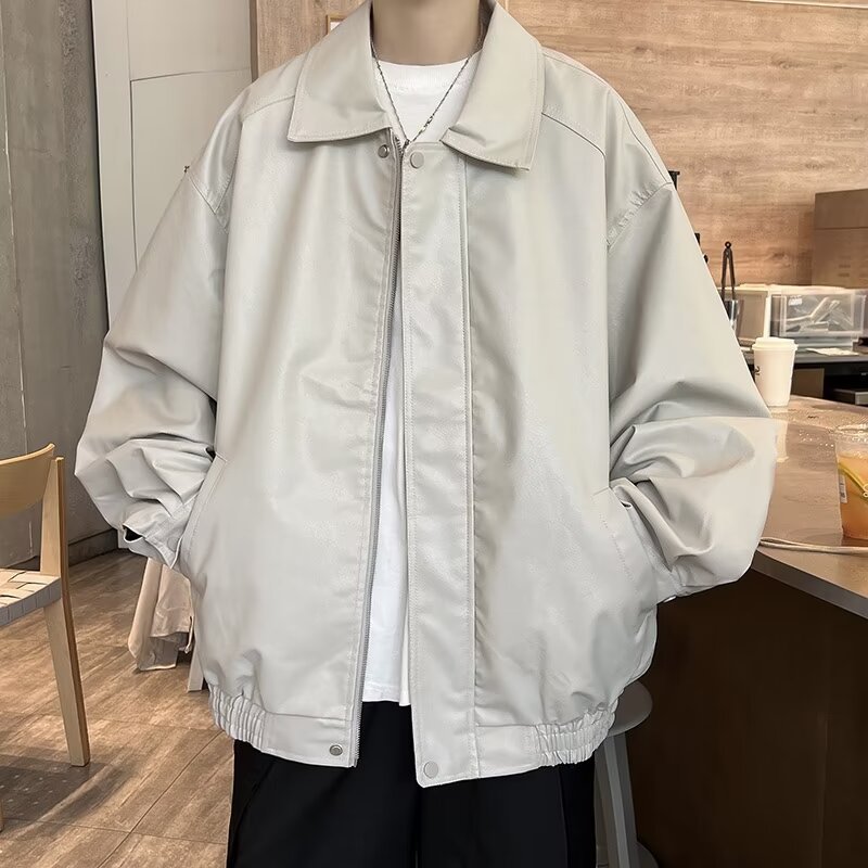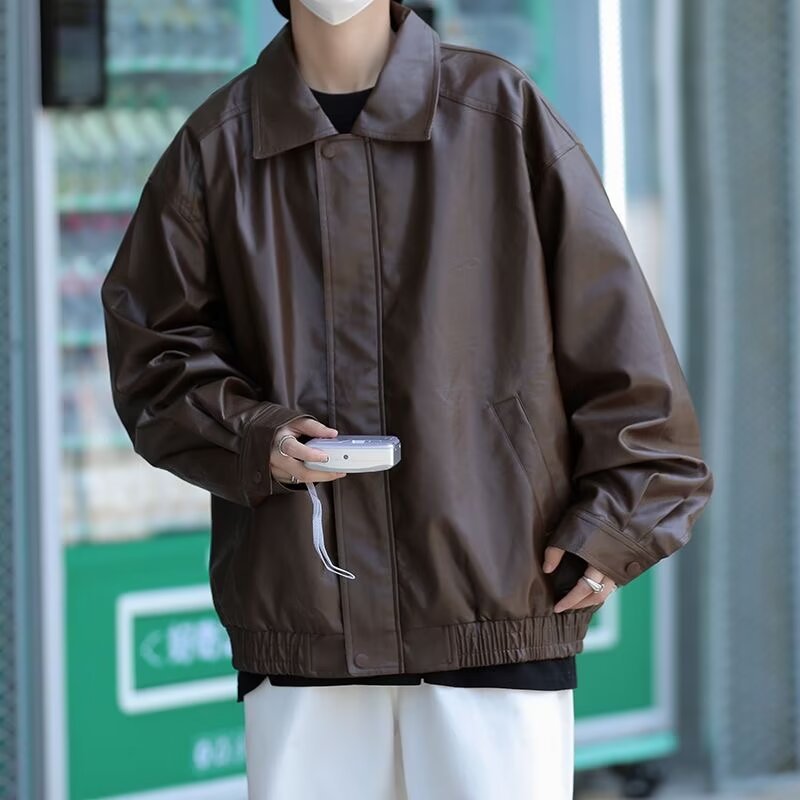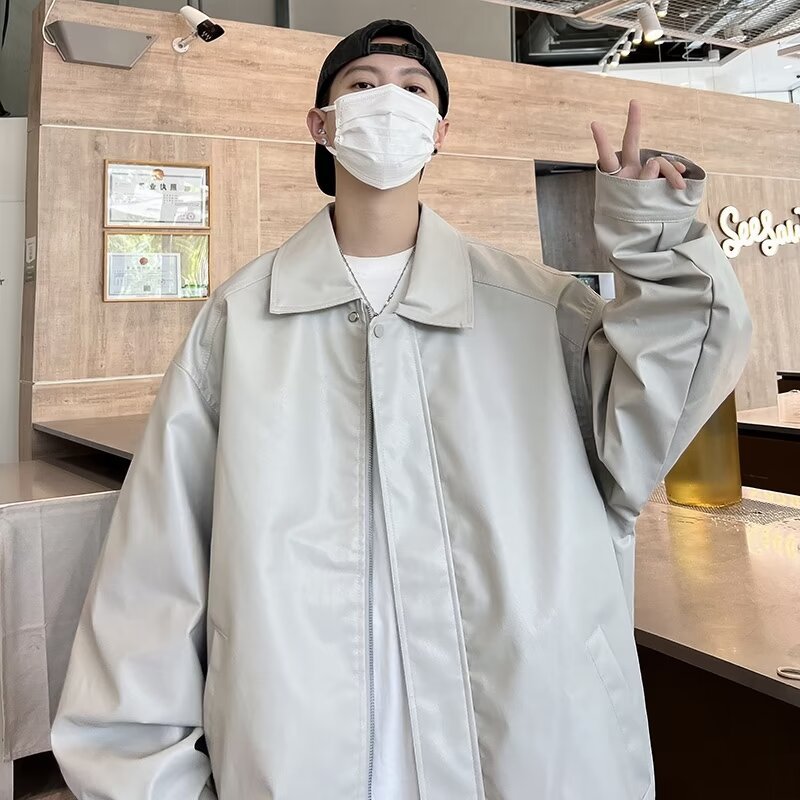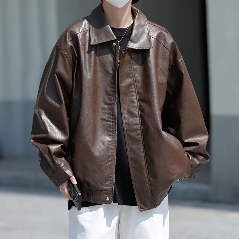 미국 복고풍 가죽 재킷 남성 봄과 가을 고급 Ruan Shuai 패션 브랜드 캐주얼 느슨한 PU 가죽 옷깃 재킷스토어 가기