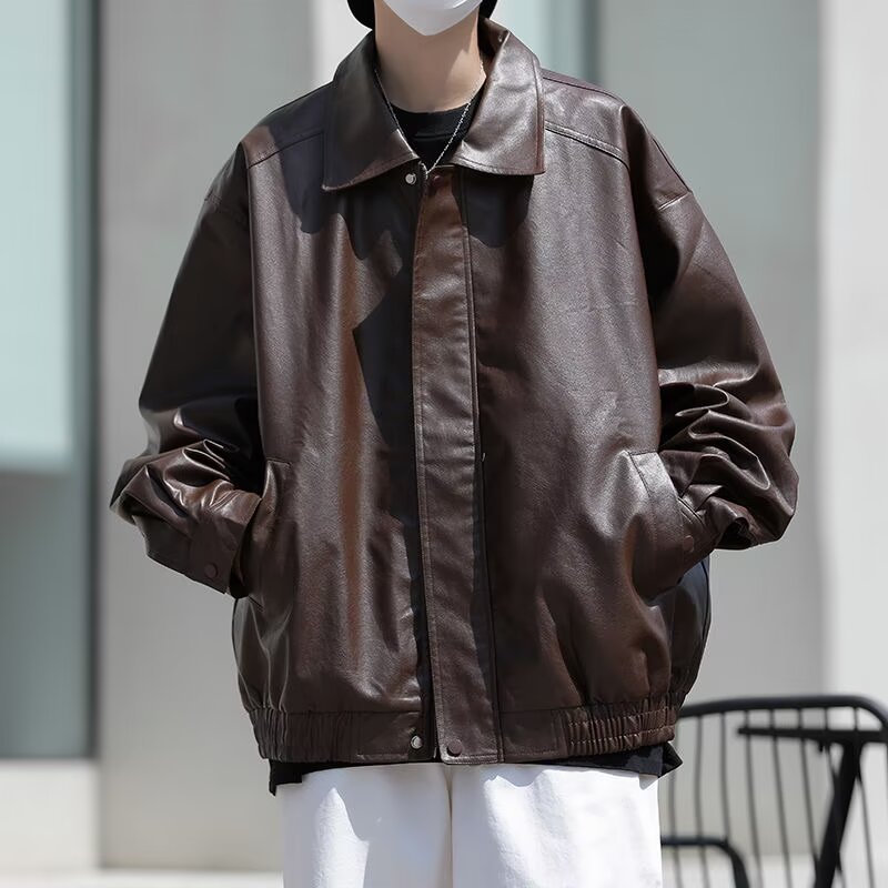 미국 복고풍 가죽 재킷 남성 봄과 가을 고급 Ruan Shuai 패션 브랜드 캐주얼 느슨한 PU 가죽 옷깃 재킷