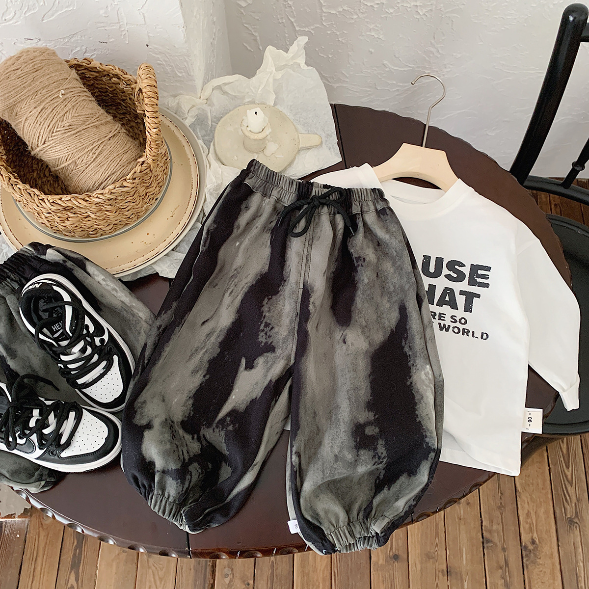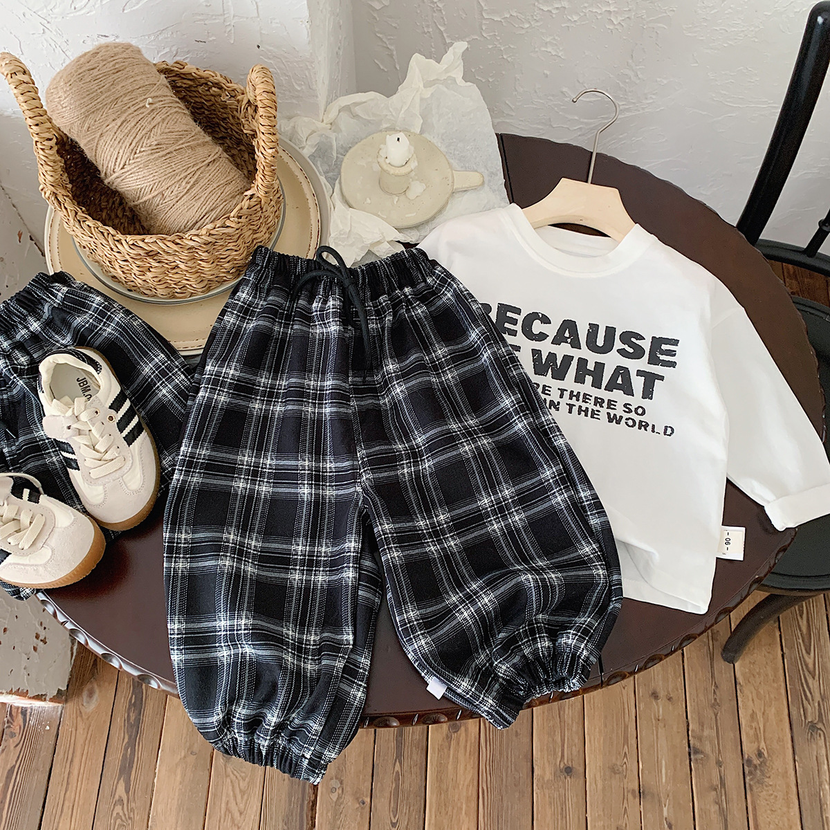 봄 2024 소년 소녀 중국 스타일 올 매치 바지 캐주얼 체크 무늬 한국 스타일 레오파드 무늬 트렌디 한 스포츠 트렌디 한 멋진 바지